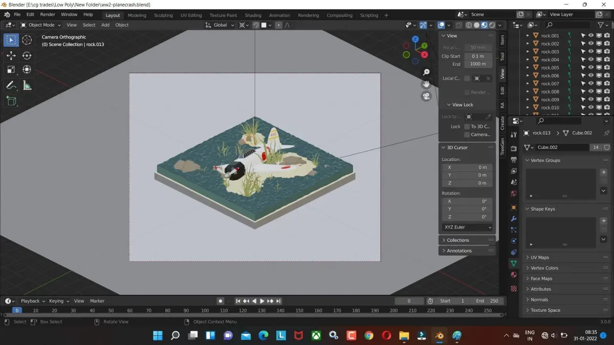 Airplane 3D model crash models plane low poly game ready Low-poly 3D model