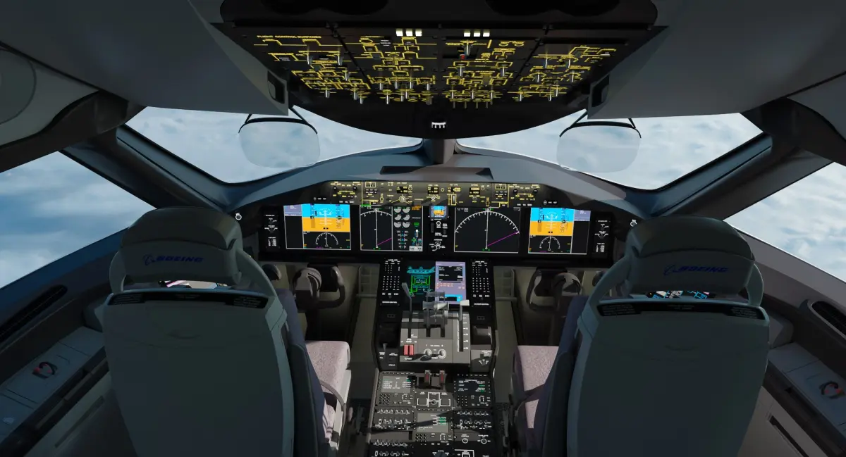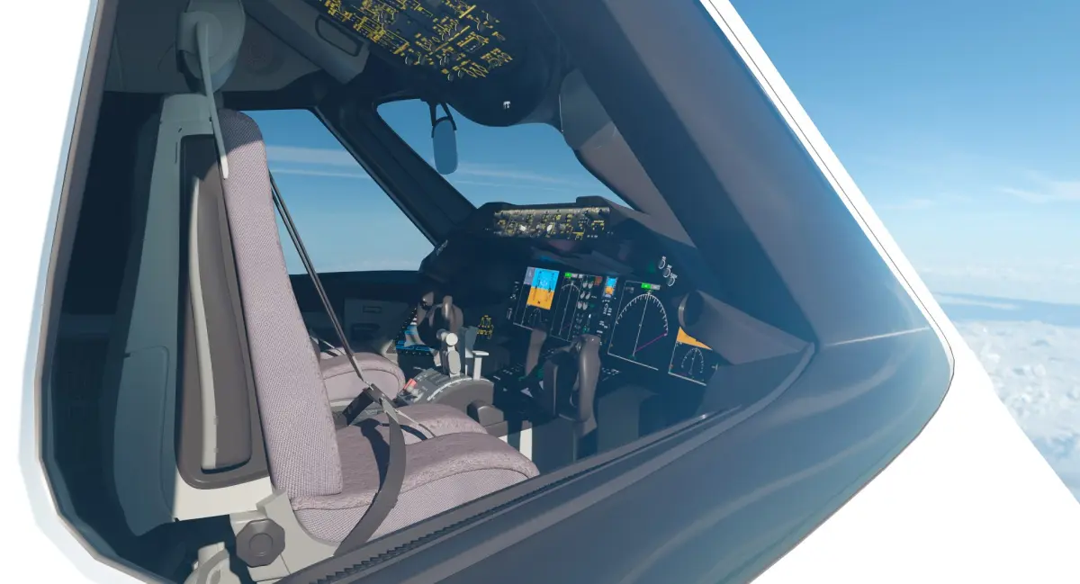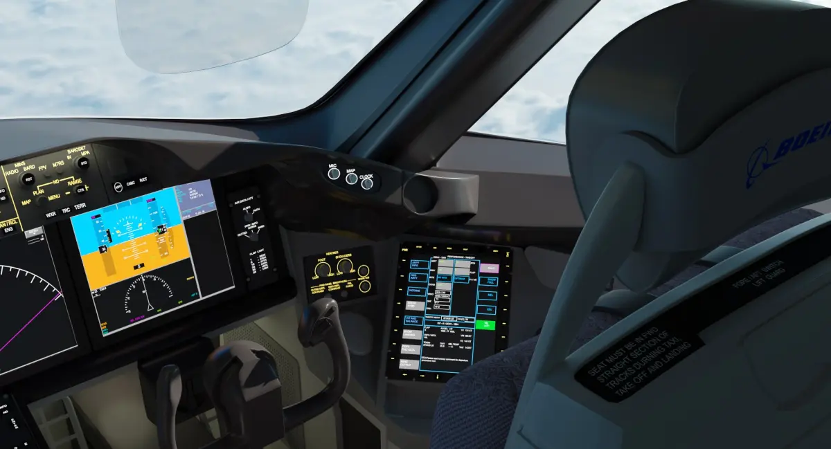 This is very detailed and accurate model of 787 Dreamliner Cockpit with detailed control panels, pilot seatings, pitch trim.