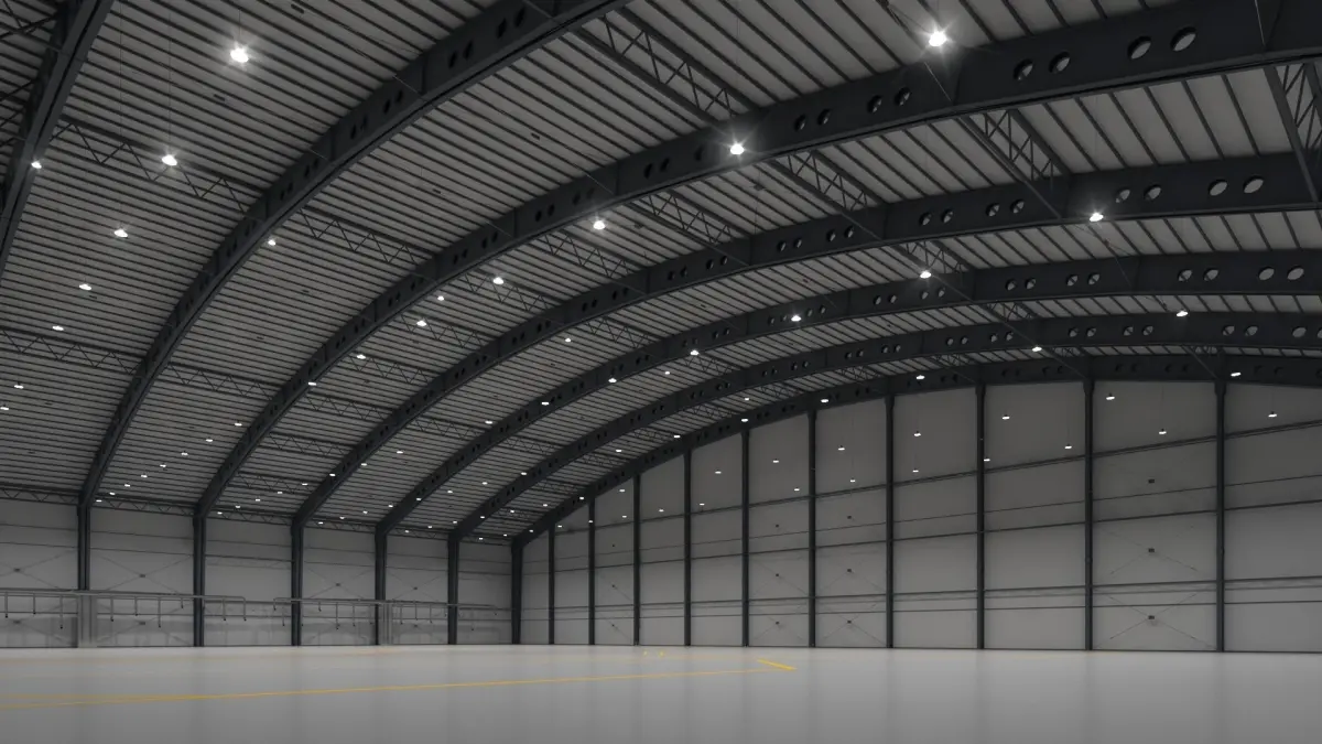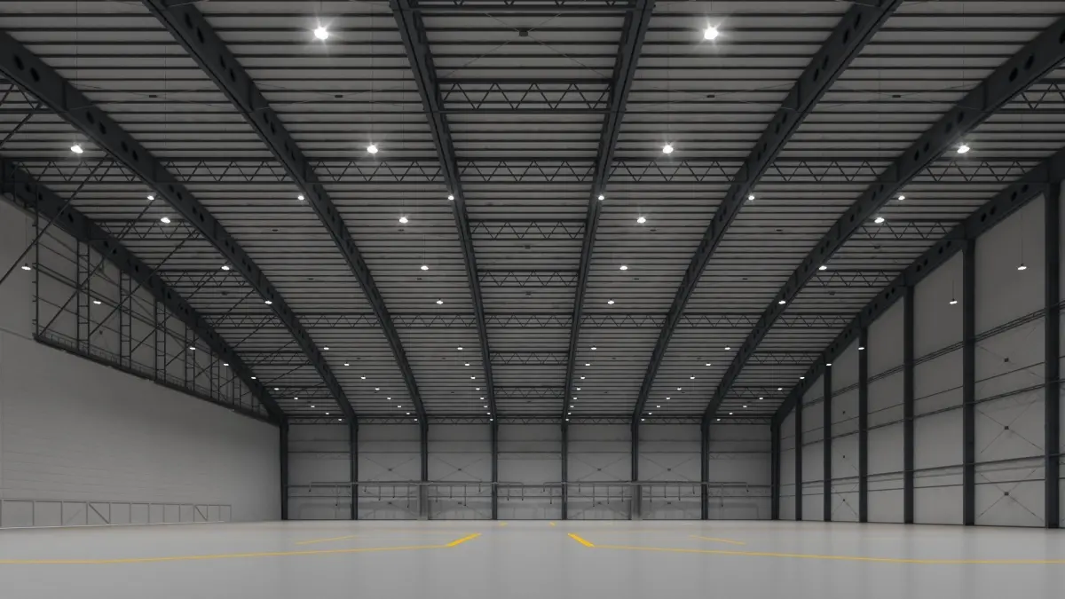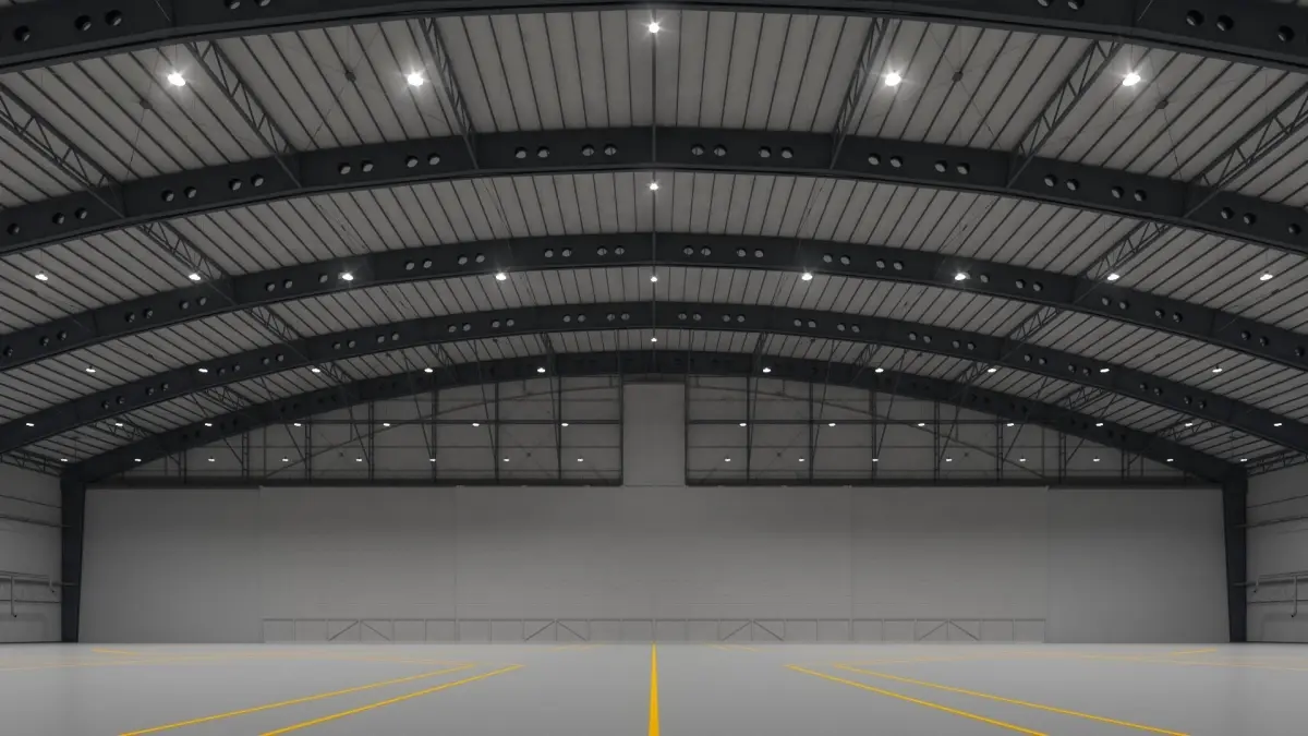 Large aircraft hangar model 150m х 107m х 37m 3ds max 2017\2014 FBX\OBJ No textures, primitive materials (floor, lines and multimaterials) Stack not collapsed Saves instances