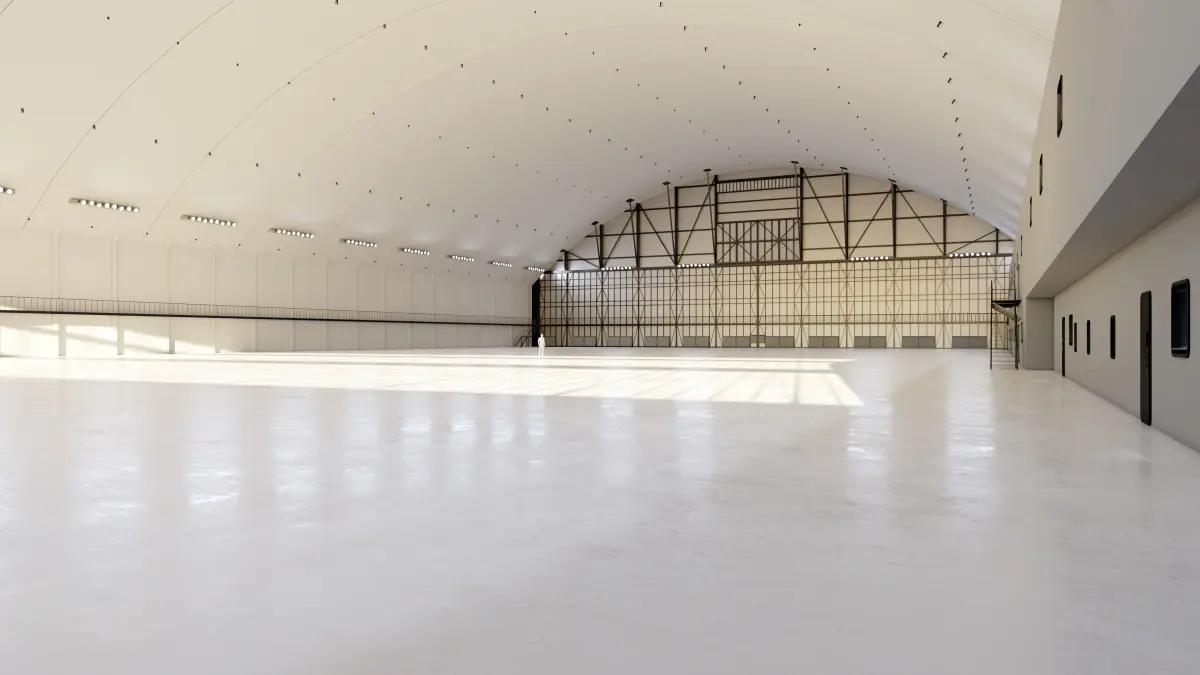 Building dimensions: 75m x 120m x 26m