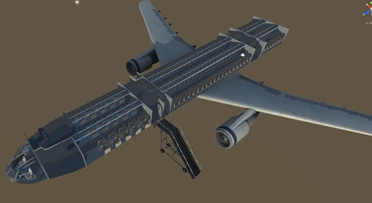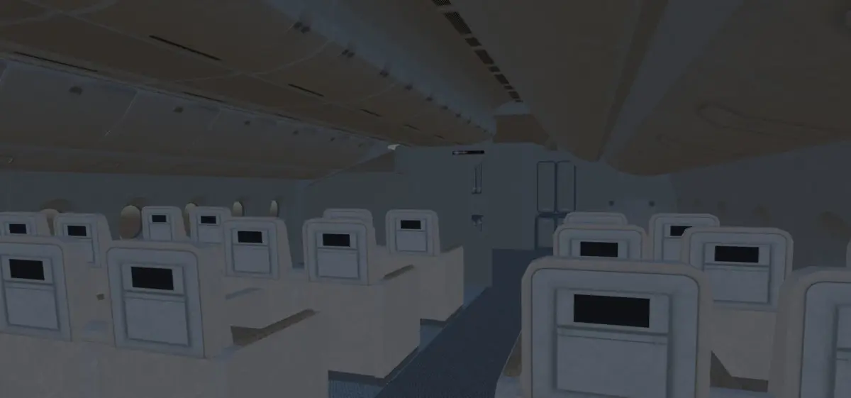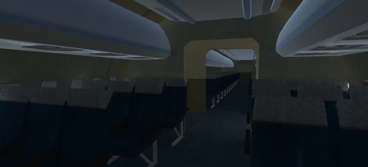 This package contains 2 different versions of an airplane interior.The first one is mentioned as an outside version with low detail interior and the second version is an interior only scene with medium detail.Collision meshes are included.