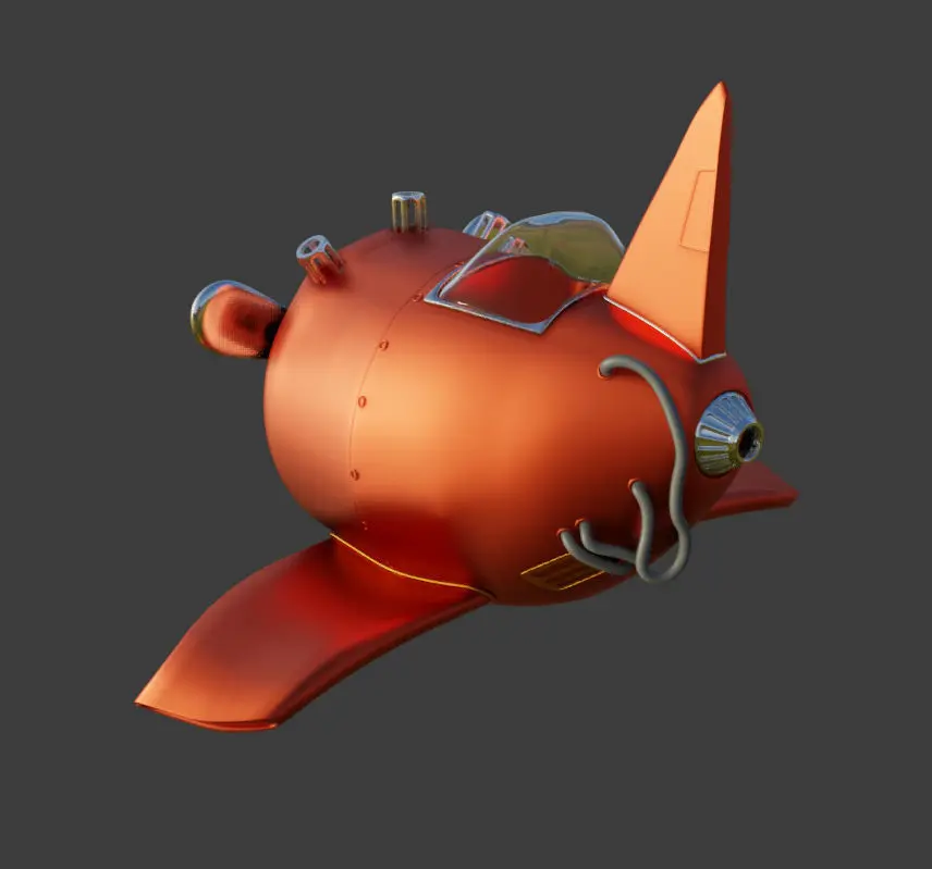 airplane orange submarine Low-poly 3D model