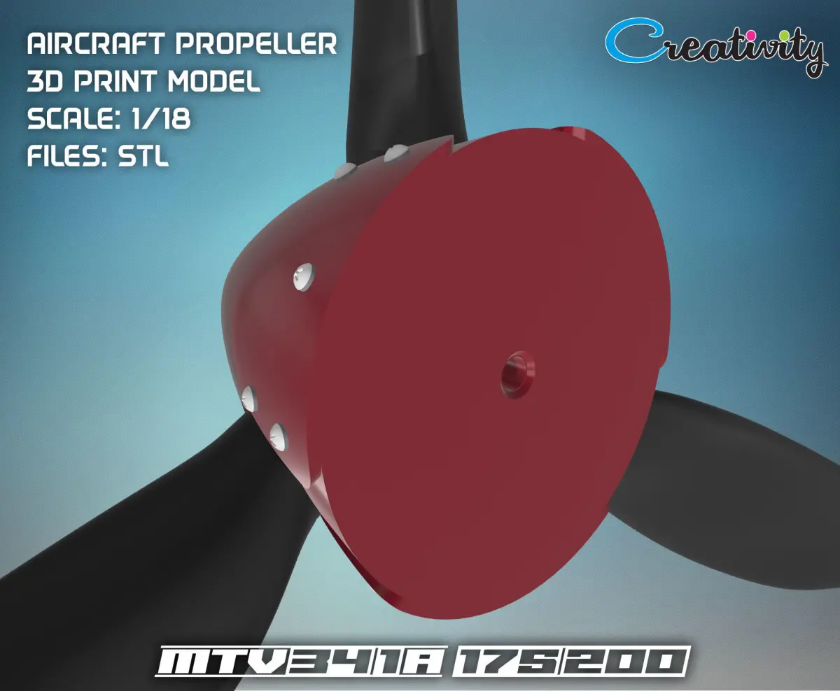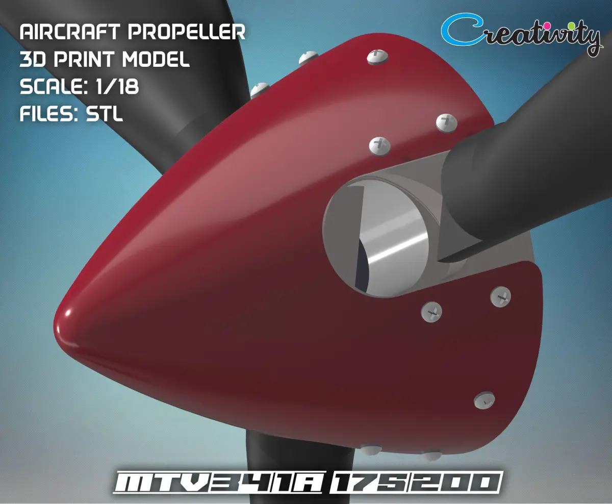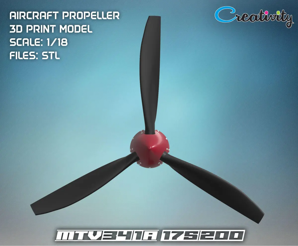3D printable model of airplane propeller MTV-34-1-A 175-200 used for Ultra Light Aircrafts (UL) or Light Sport Aircrafts (LSA).Can be used for large-scale models.Scale: 1:18Pre-supported parts includedDimensions: Hub - height 14,7 mm (0.58 inch); diameter 14,3 mm (0.56 inch), hole diameter 1 mm (0.1 inch) Blade - length 44 mm (1.73 inch)