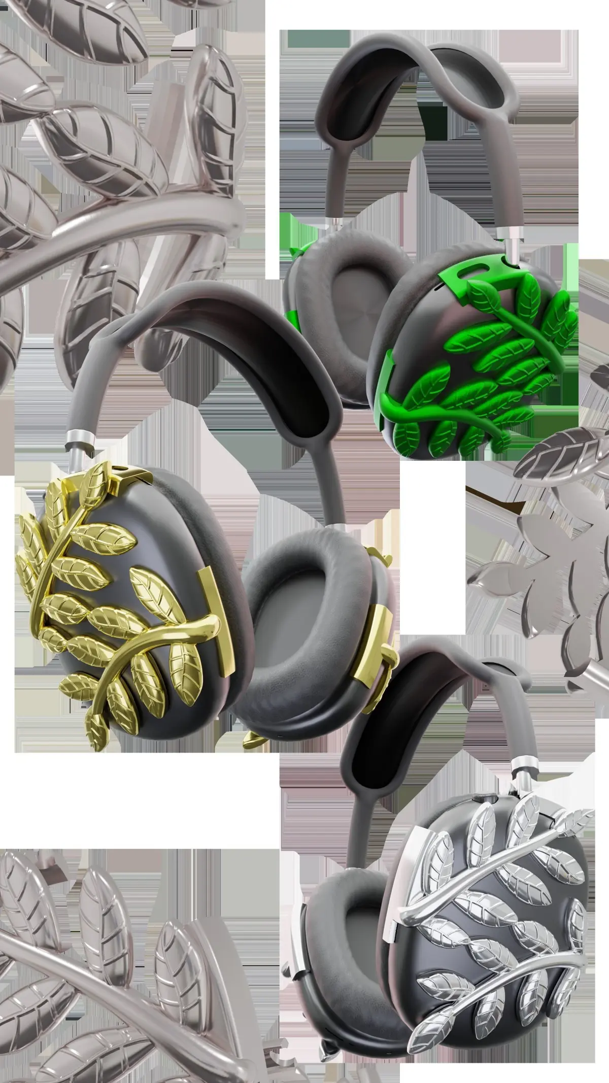 3D printable models available for download, allowing you to print Airpods Max attachments on your 3D printer.Two lightweight and flexible elements in the shape of tree branches with elegant leaves create an atmosphere of natural harmony.Gently contour the shape of the headphones, emphasizing their style and adding unique charm.Provide a small amount of protection against damage from accidental drops or impacts.Suitable for: