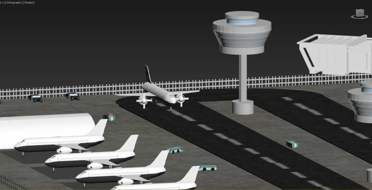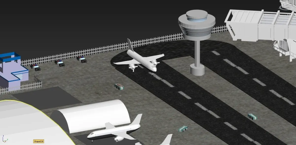 this is an international airport model. the files are .MAX,FBX.OBJ.MTLthis file contains:1-airport2- airplane3- small police department4- police car5-g17 pistol6- shotgun7-airport building8- airport communication tower9-workers car