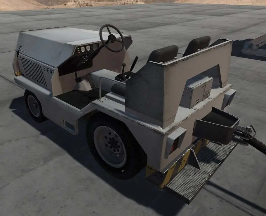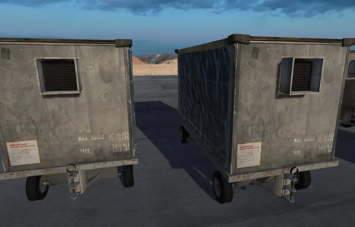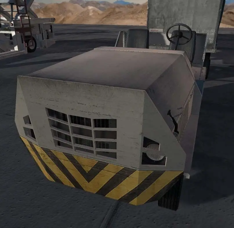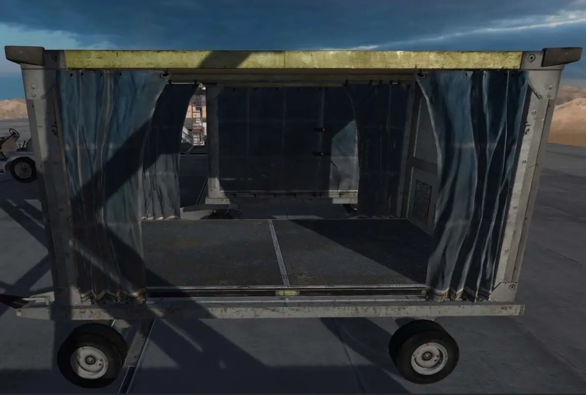 Airport Baggage Tractor comes with different levels of LOD. Baggage Cart comes in 2 versions, one with the curtain open, and the other one closed.