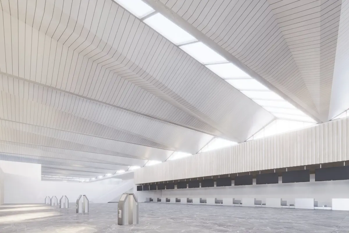 FULL CGI 3DS MAX VRAY 3D model. The project is a modern airport building with contemporary design. This model contains 3ds Max 2022 and 2019 scenes/cameras ready for render in vray like you see in renders/screenshots. Lighting in Textured in 3ds Max and Vray,with the same render settings and lighting. 3ds Max native and exported to DWG, FBX, OBJ, SKP and (.3dm) Rhinoceros 3D (without textures in this exported file) . ZIP folder contains proxies, HDRI and textures.
