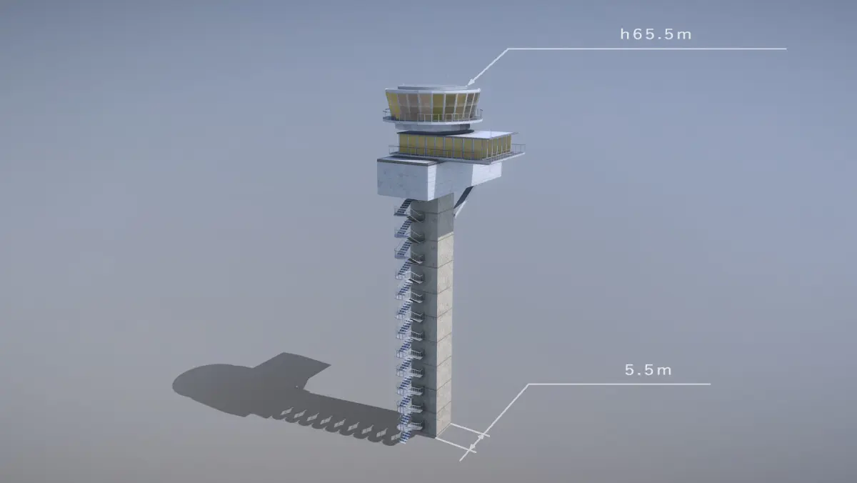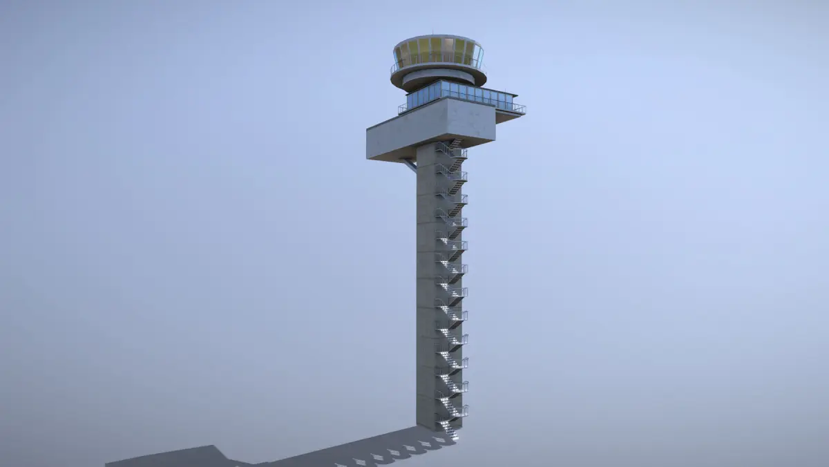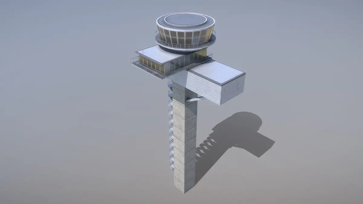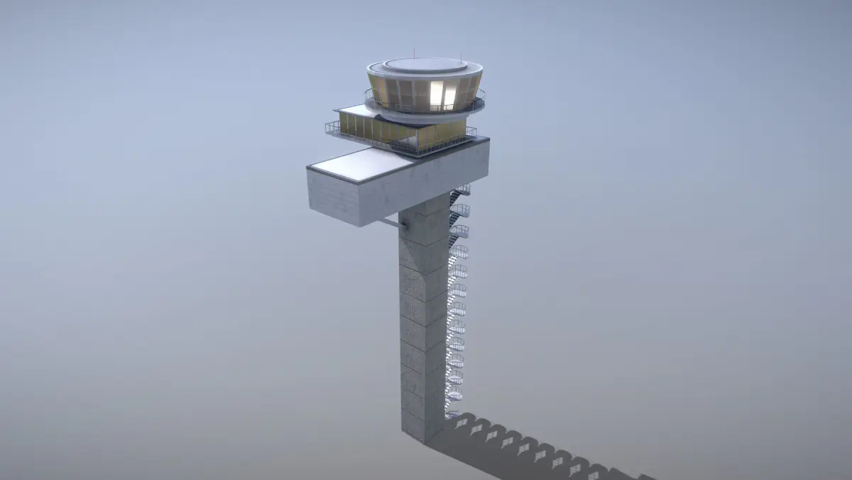 Low-poly 3D model Airport Control Tower with LODs