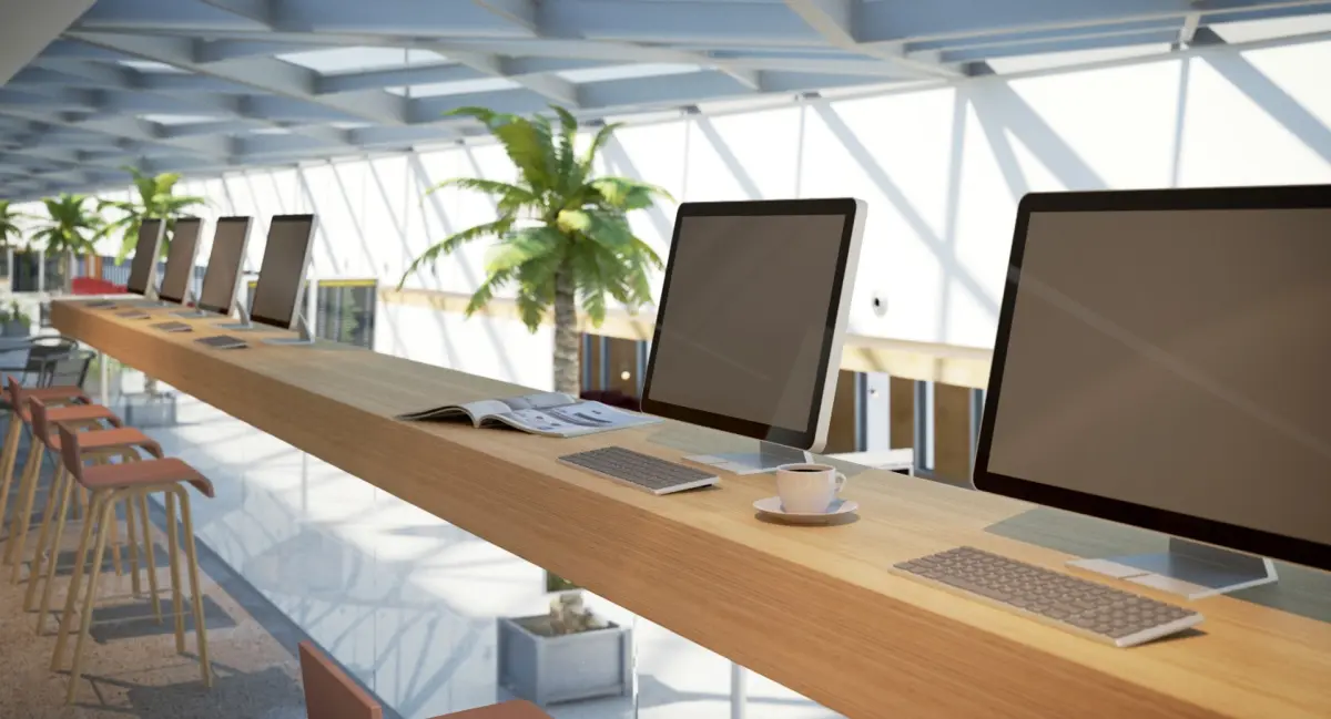 This is detailed interior model of an international style airport departures lounge.