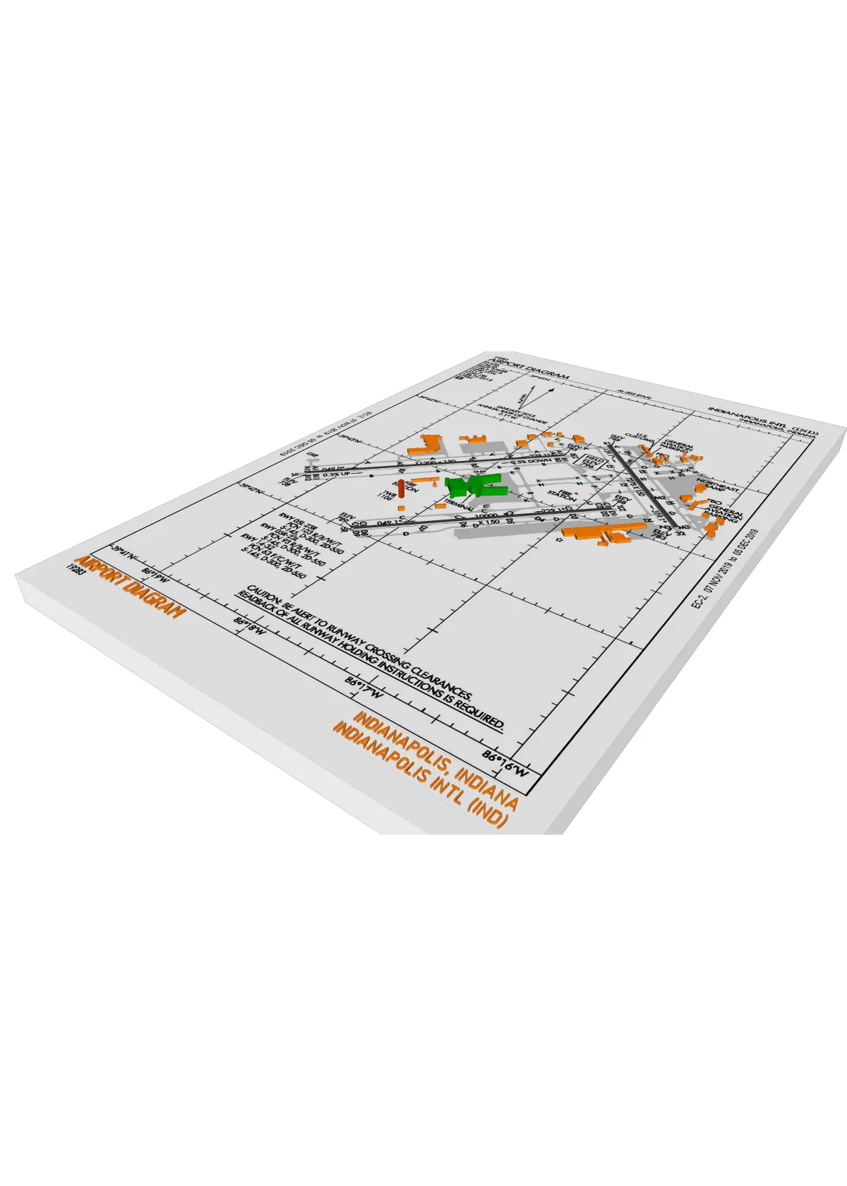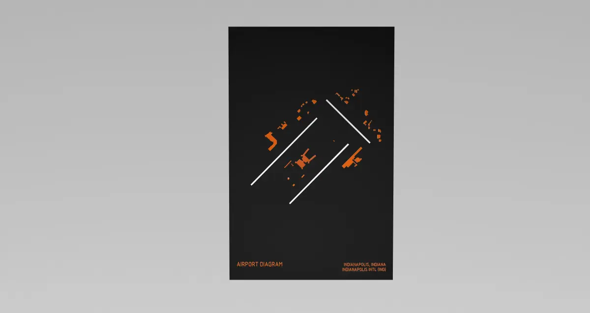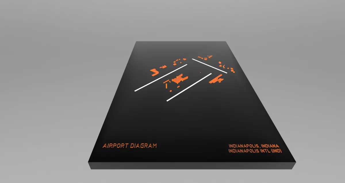 3D model of an airport diagram of Indianapolis International Airport - IND. The model was developed using Sketchup 2019 and 3D Coat (PBR), rendered and exported to the above file formats.