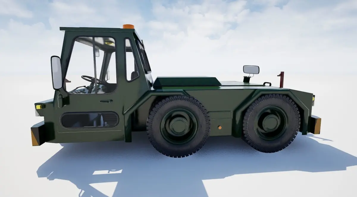 Flugzeugschlepper Schopf pushback tractor is originally created in Blender 4.1, rendered with Blender and Unreal Engine.