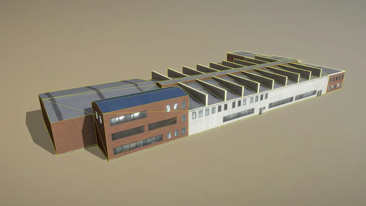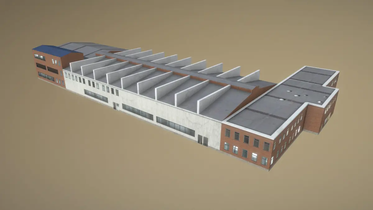 Low-poly 3D model Airport Hangar with LODs