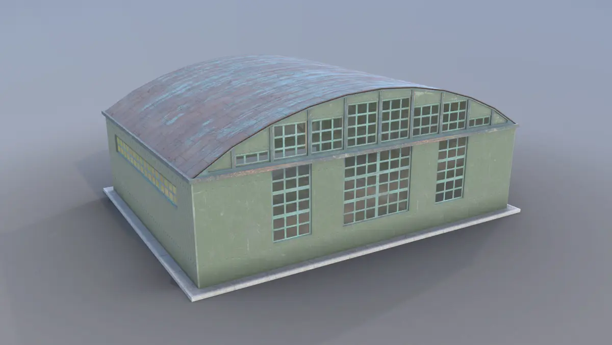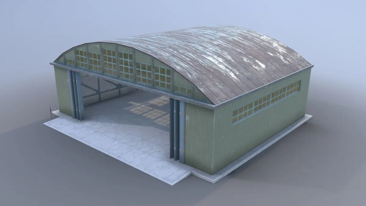 Low-poly 3D model Airport Hangar with LODs