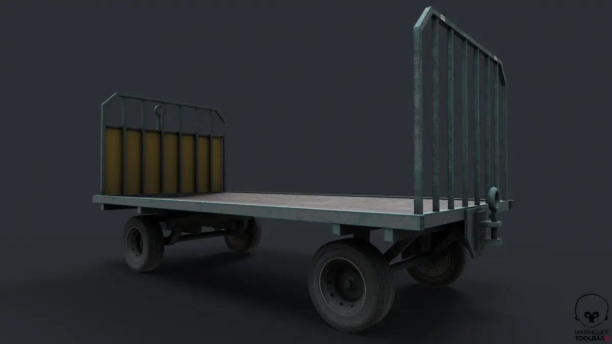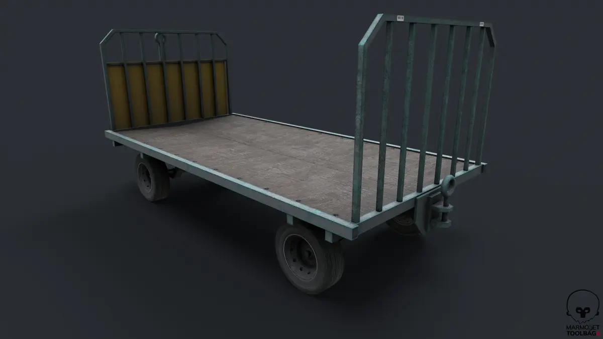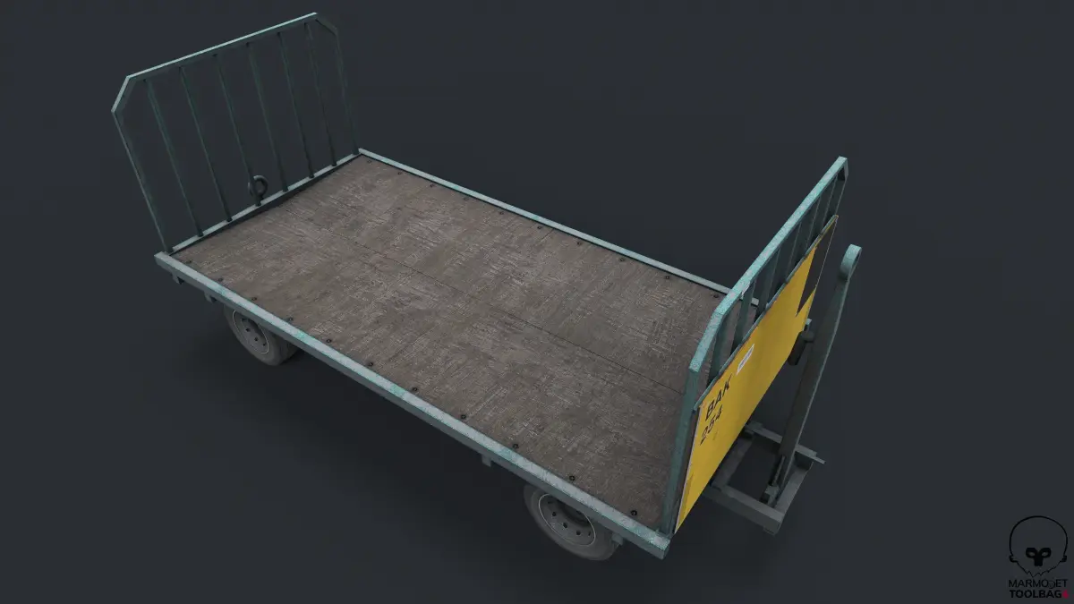 Used to transport luggage from a luggage sorting facility to the aircraft, a luggage cart is an integral part of any airport operation no matter the size. This model has about 3000 polygons and is unwrapped to a single texture sheet with both non overlapping and overlapping parts. Normal maps were baked in Marmoset toolbag, the highpoly and lowpoly were made in Blender and the model was textured in Substance Painter 2021.