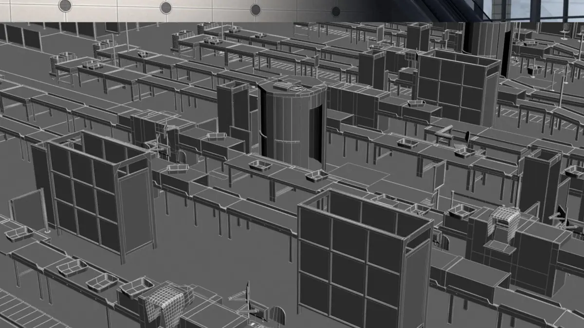 - A single, complete airport security checkpoint 3D model (low-poly)