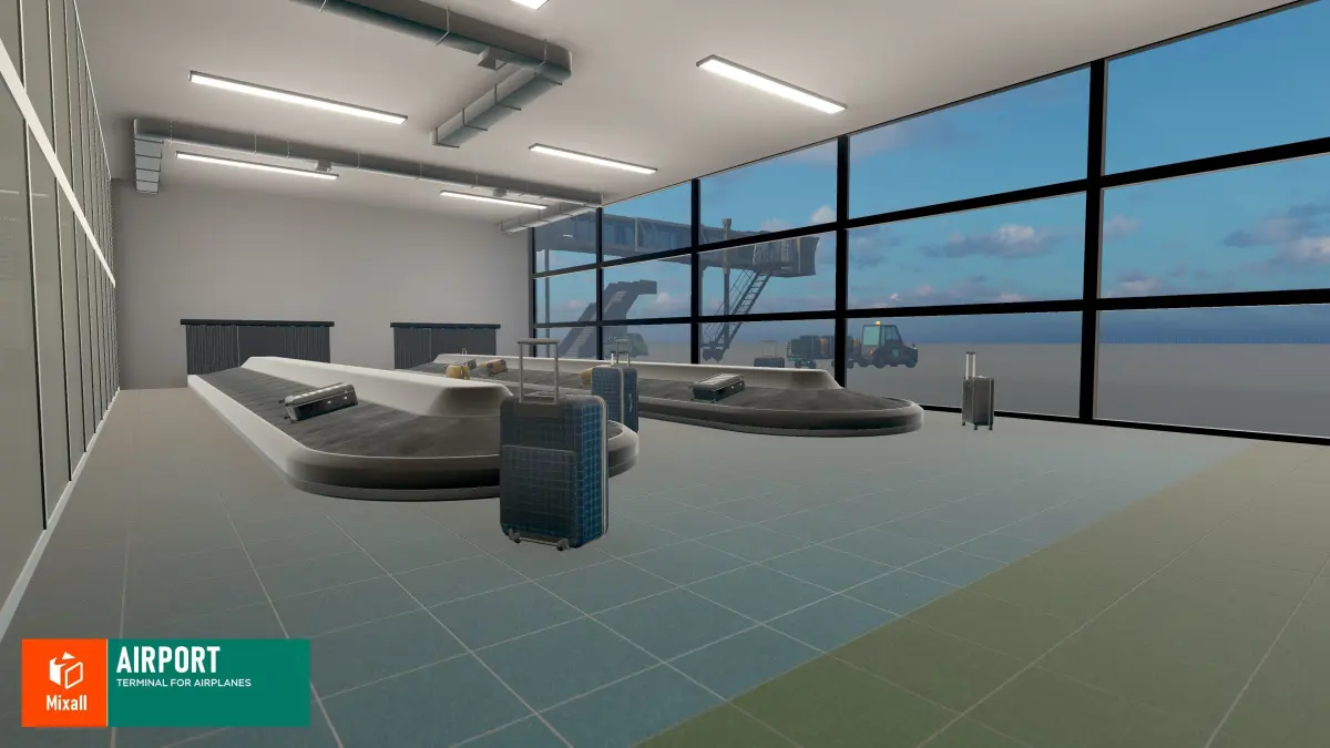 Mixall studio presents a good solution for your games, VR projects and simulators: Airport - terminal for airplanes.This pack contains a complete and detailed airport scene with runways, taxiways and the most important buildings such as the tower, terminals, passport control and a detailed control tower interior. The airport was created in the likeness of a USA airport.** Key Features **modern high quality interior and exteriormany quality propsdetailed control tower interiormany unique tables of navigationalgame ready demo scene** Assets **Building.Technique: Computer, Headset, Keyboard, Monitors, Mouse, Telephone, Baggage wrapping machine, Double Runway Light, Escalator, Payment counter, Runway Light, Streetlamp, Surveillance camera.Furniture: Desk, Office Chair, Buffet, Cabinet seats promo, Chair, Couch, Table, Sofa.Other: Aliy sign, Baggage check, Barrier, fence, Information Stand, panel, Parking booth, Pot, toilet, Trash can.