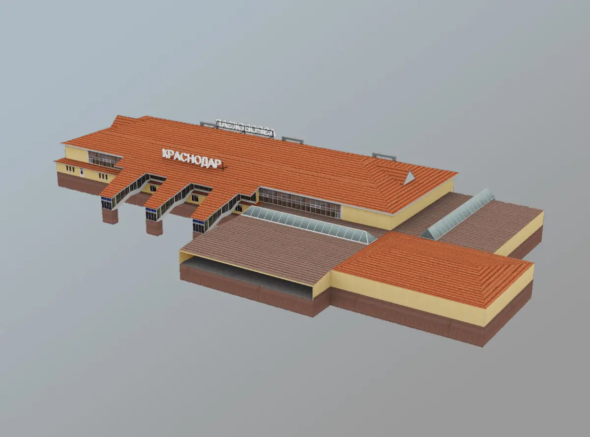 Low-poly 3D model Airport Terminal with LODs