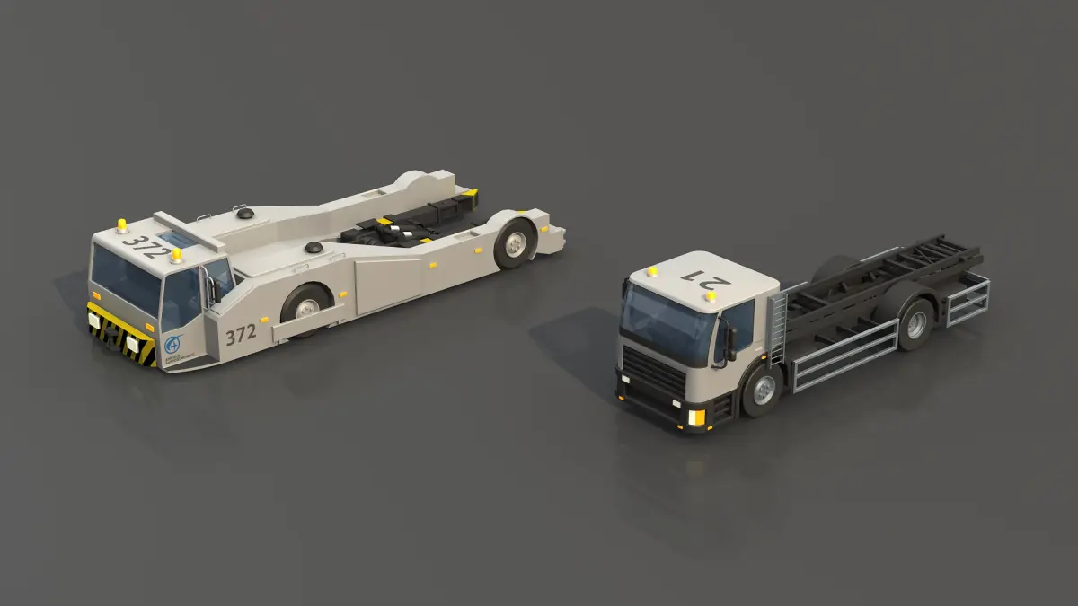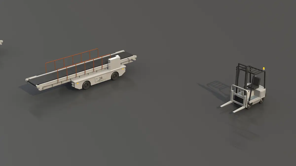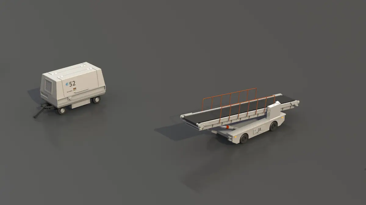 Airport support vehicles HD<br/><br/>- Models are suitable for use in movie, animation, broadcast, advertising, and visualization, etc.<br/><br/>- Only quads and/or triangles polygons<br/>- Model is placed at origin<br/>- Real world scale<br/>- Units of measurement used: Meters<br/><br/>- Clean and optimized models for quick rendering<br/>- Clean scene with clear name convention<br/>- Basic materials used<br/>- No plugins required<br/><br/>Including Ground Support Equipment such as:<br/><br/>- Pushback vehicle<br/>- Ground power unit<br/>- Hydrant truck aircraft refuel vehicle<br/>- Tank truck<br/>- Aircraft Services Stairs<br/>- Aircraft catering vehicle<br/>- forklift<br/>- Luggage transport<br/>- Airport Tug<br/><br/>4096 x 4096 UV texture resolution for vehicles <br/>512 x 512 bump map for ground<br/><br/>Delivery File formats:<br/><br/>- Lightwave scene:<br/>- LWO file (UV-map and quads and/or triangle polygons)<br/>- LWS file (scene, camera and light setup)<br/><br/>Additional File formats:<br/><br/>- OBJ file (UV-map and quads and/or triangle polygons)<br/>- FBX file (UV-map and quads and/or triangle polygons)<br/>- DXF file (quads and triangle polygon)<br/><br/>Thank you for visiting 3D Pro Models! (click on my name for more great models)<br/>--------------------------------------------------------------------------<br/><br/>Please Rate this product if you are able to.