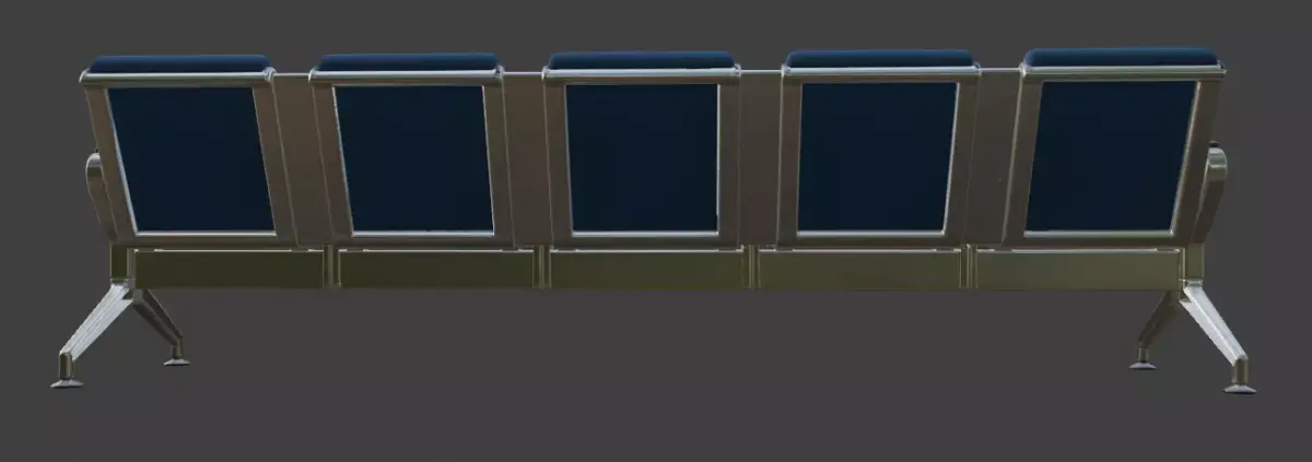 Formats available: OBJ, FBX, STL, GLB, USDZ. Includes PBR textures (diffuse, normal, roughness, metallic, etc.). Add professional public seating to your 3D projects with this versatile airport bench model!