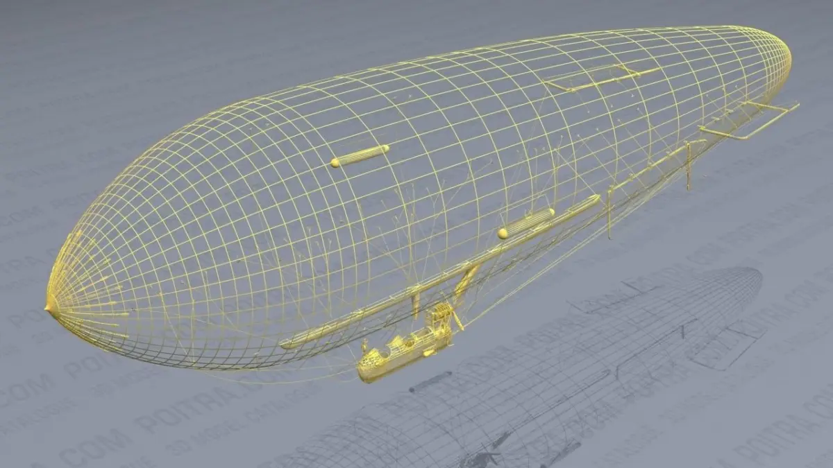 3D Model British Airship - 20th Century English, Royal Naval Air Service, SSZ (Zero), Non-Rigid Airship, c. 1915 (textured 3d model). The airship model's balloon and car are painted and marked as RNAS SSZ 37. Most elements are individual/separate 3d objects for ease of use/animation (see renders and details below, or ask a question).