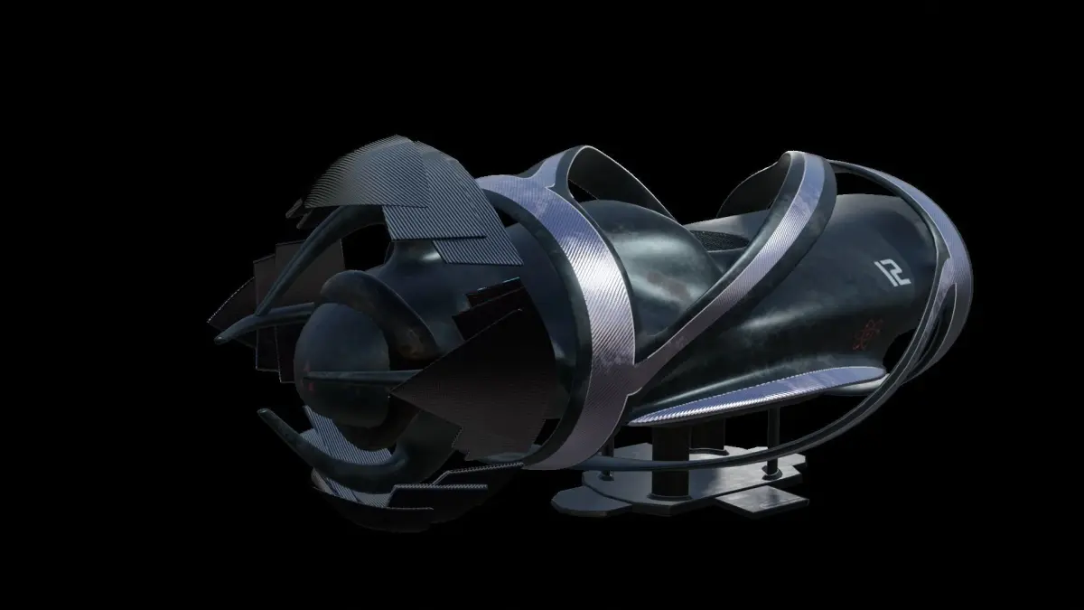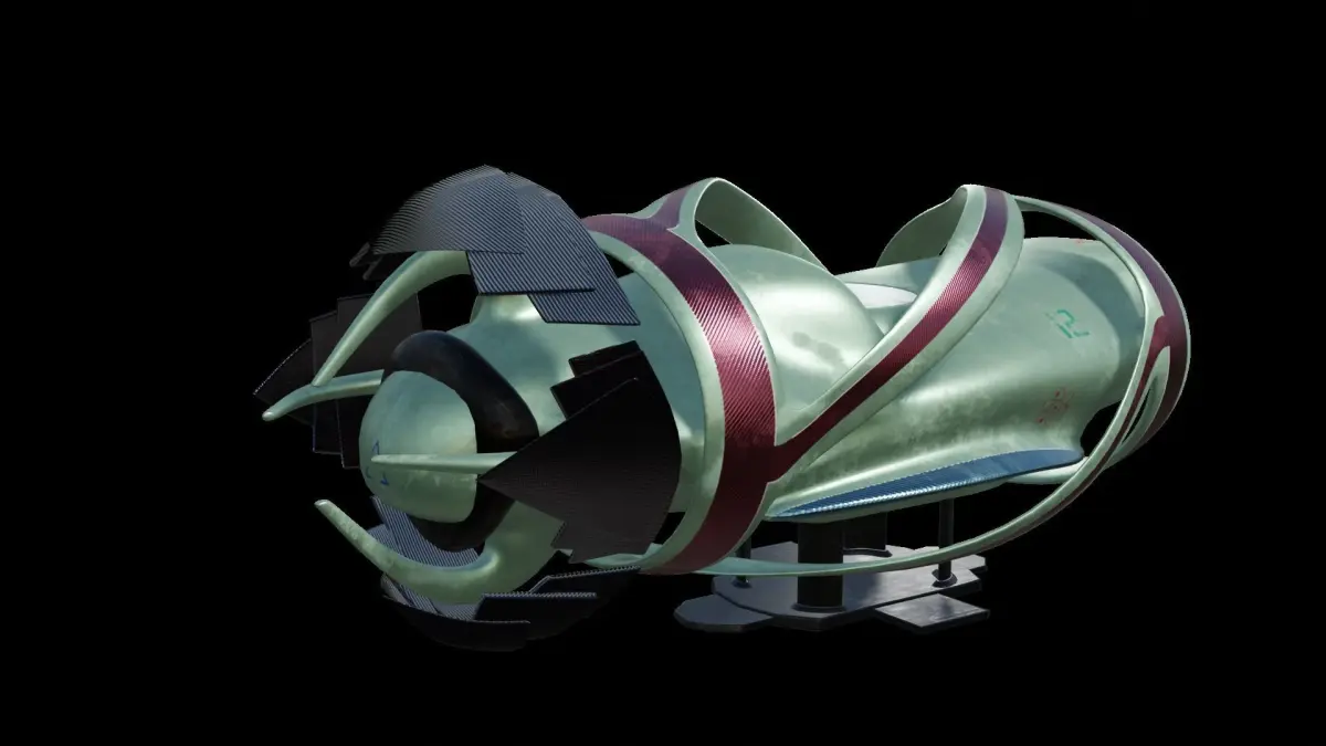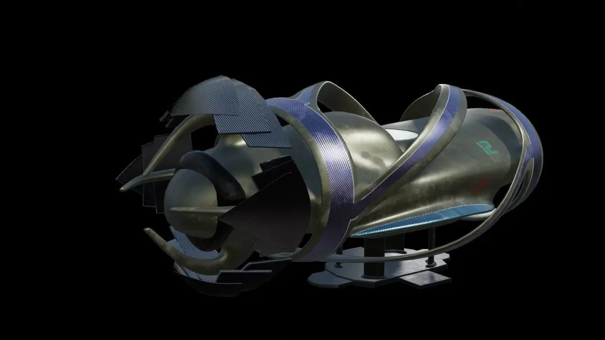a spaceship powered by a gravity engine. Heat shields for atmospheric flight. Five sets of PBR 2K textures