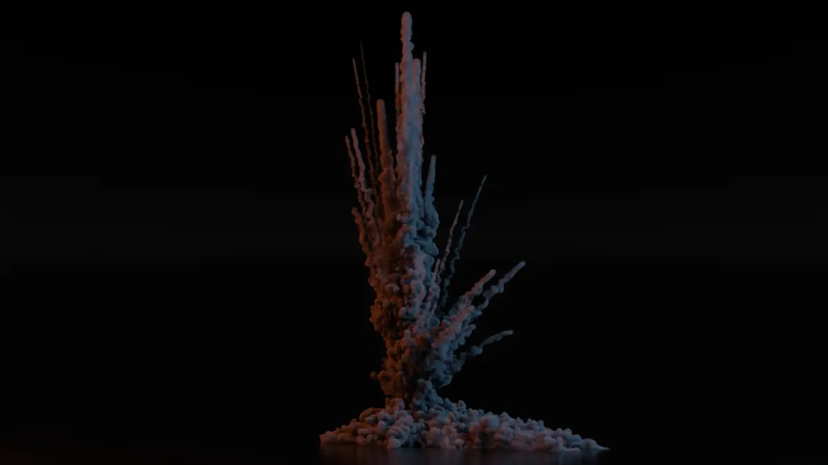 /Airstrike Explosion 2/ is a 200 Frames long animation of a bomb hitting the Ground. The file contains 200 VDBs files, that can be used as an Animation and also as individually Parts. The VDB files are easy to import into most modern 3D-Software. The density and color of the smoke are also changeable in most 3D-Software.