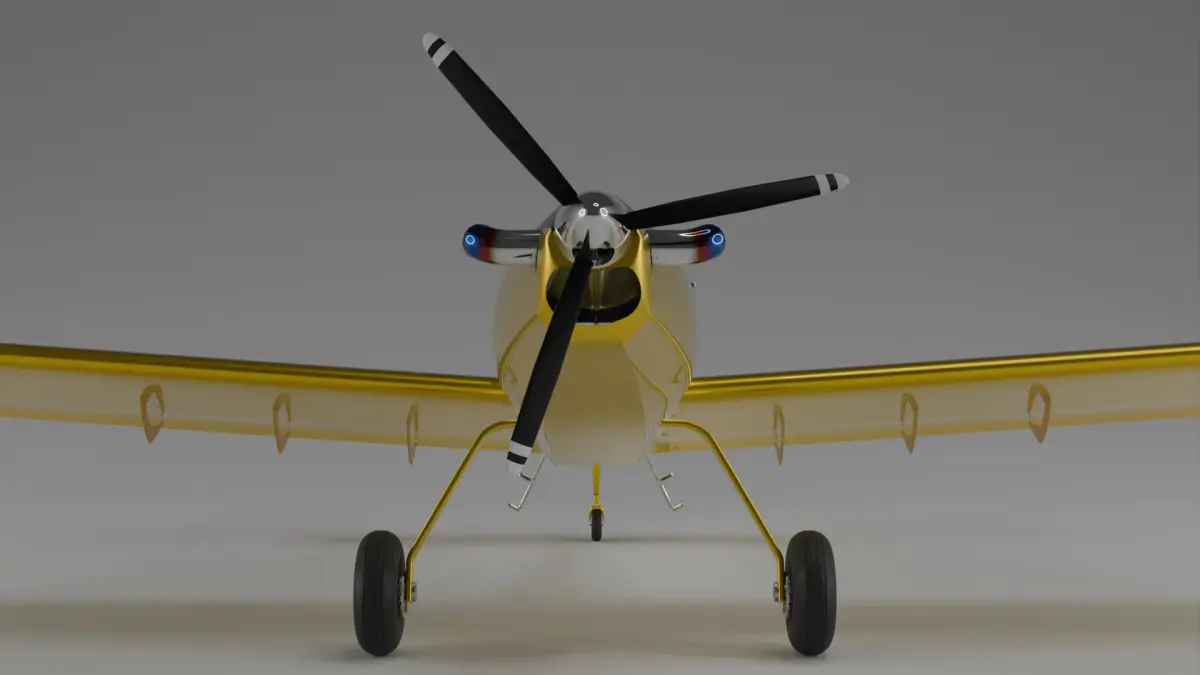 The Air Tractor AT-502 is a versatile agricultural aircraft renowned for its impressive capabilities in crop dusting and aerial application. Powered by a Pratt & Whitney PT6A turboprop engine delivering 1,050 horsepower, this workhorse can carry over 500 gallons of chemicals or water for agricultural spraying and firefighting operations. With its distinctive yellow paint scheme, robust landing gear, and sizable wingspan of 52 feet, the AT-502 combines rugged durability with exceptional maneuverability, making it one of the most popular and reliable agricultural aircraft in service today. First introduced in 1987, it remains a staple in agricultural aviation fleets worldwide. I modeled this aircraft using accurate blueprints. Flight controls are fully rigged and the model is textured.