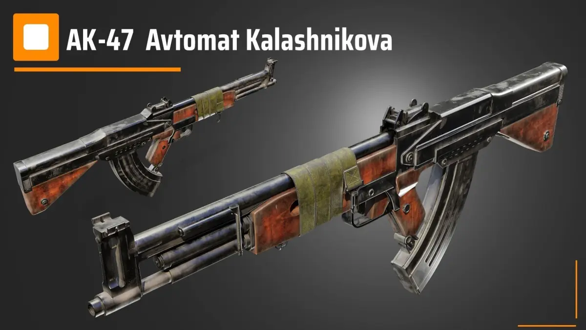 his 3D Model, Called AK-47 Avtomat Kalashnikova, And I did it in 3dsmax and has 4 divided parts to improve the quality of material processing.In terms of material, The model is made of three types of materials: wood-fabric and metal