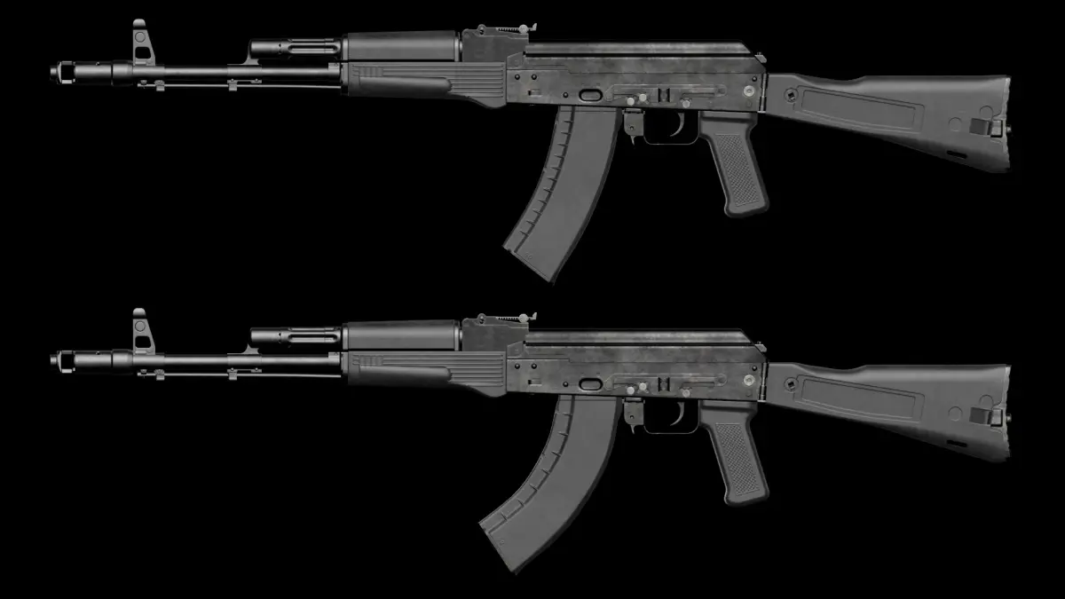 Includes: AK-74M, AK-101 and AK-103, which are visually identical and share the same model file, but different mags - the only difference between AK-103 with a larger mag and AK-74M, AK-101 with short mags. Thus it is possible to switch between rifles by simply hiding or deleting the appropriate mag.