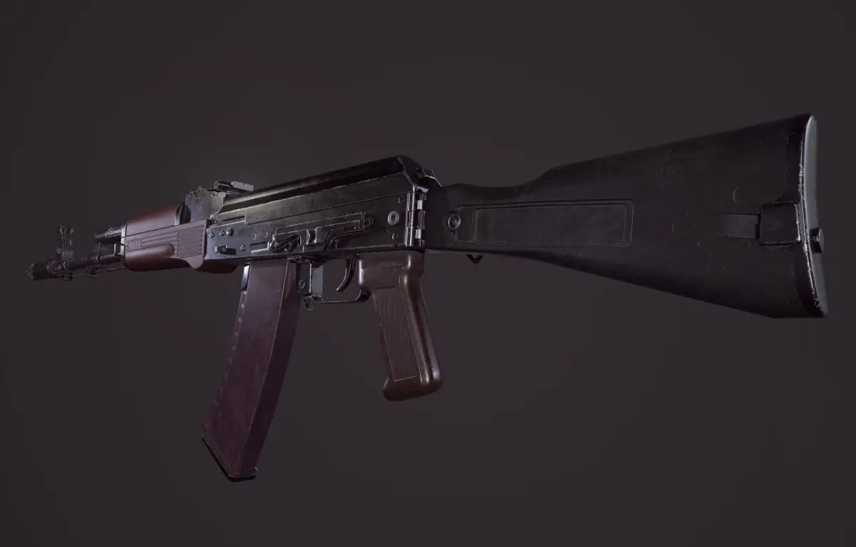 AK 74 M assault rifle model. There are also two formats FBX, 3D studio 2017Texture sets: Three texture sets 2048x2048 and 4096x4096 (UE4 Packed ) (metal roughness)Polys: 8 530Tris: 16 971Verts: 9 277