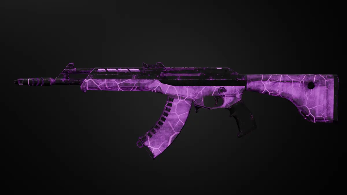 AK-Venom Phantom is a stylized, high-fidelity 3D model of a modern assault rifle, blending realism with a distinct cyber-fantasy aesthetic. Modeled in Blender and textured in Substance Painter, the weapon features a cracked neon-purple pattern over a dark base coat—evoking the look of corrupted energy surging through hardened alloy.