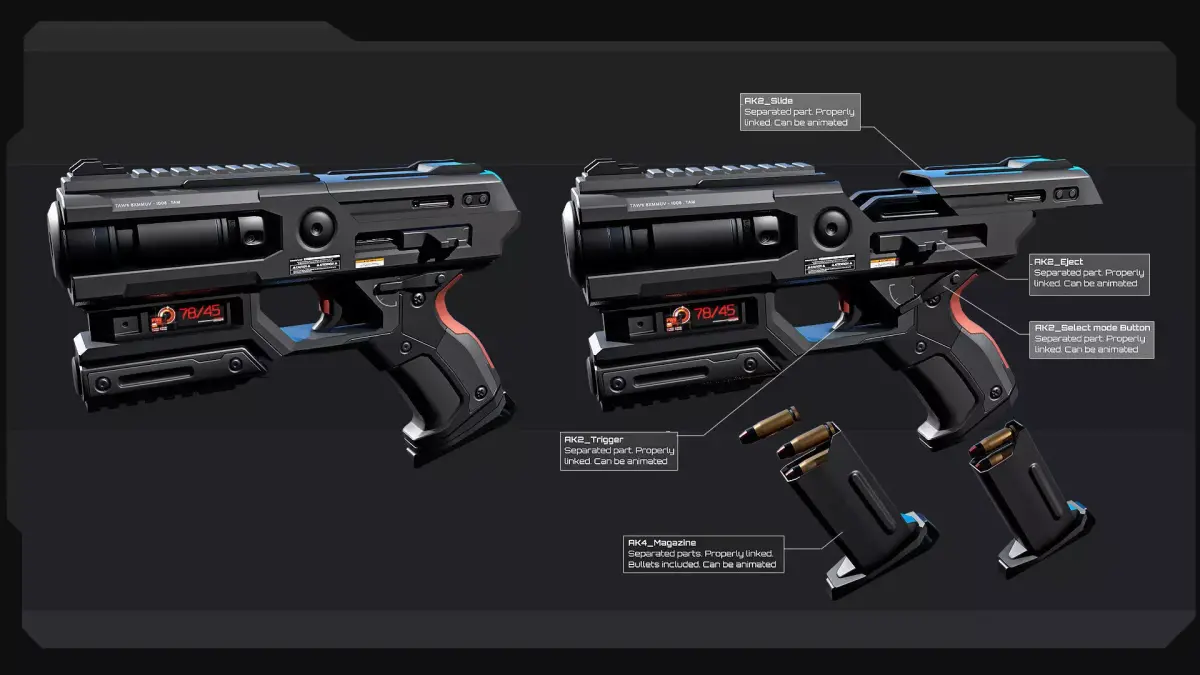 Attention: THIS MODEL IS NOT INTENDED FOR 3D PRINTING, NO Stl files included. This Original package contains one AK2 - HandGun. This is own concept does not repeat any existing work. You can use it without a doubt about copyright.