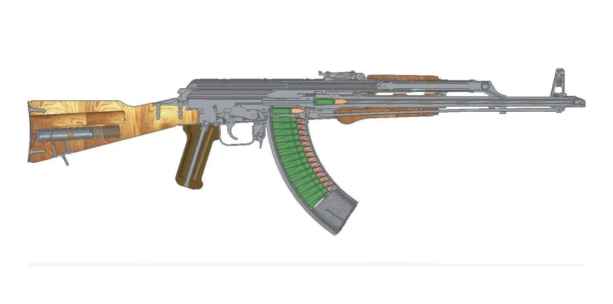 The AKM (Автома́т Кала́шникова модернизи́рованный) or Kalashnikov modernized assault rifle is a 7.62×39mm assault rifle designed by Mikhail Kalashnikov. It is a common modernised variant of the AK-47 rifle developed in the 1940s.Introduced into service with the Soviet Army in 1959, the AKM is the prevalent variant of the entire AK series of firearms and it has found widespread use with most member states of the former Warsaw Pact and its African and Asian allies as well as being widely exported and produced in many other countries. The production of these rifles was carried out at both the Tula Arms Plant and Izhmash. It was officially replaced in Soviet frontline service by the AK-74 in the late 1970s, but remains in use worldwide.The AKM maintains the AK-47's wood stock, but has simpler individual parts that are favorable for mass production. Like the AK-47, many variants of the AKM exist such as the AKMS, AKML, and AKMP.