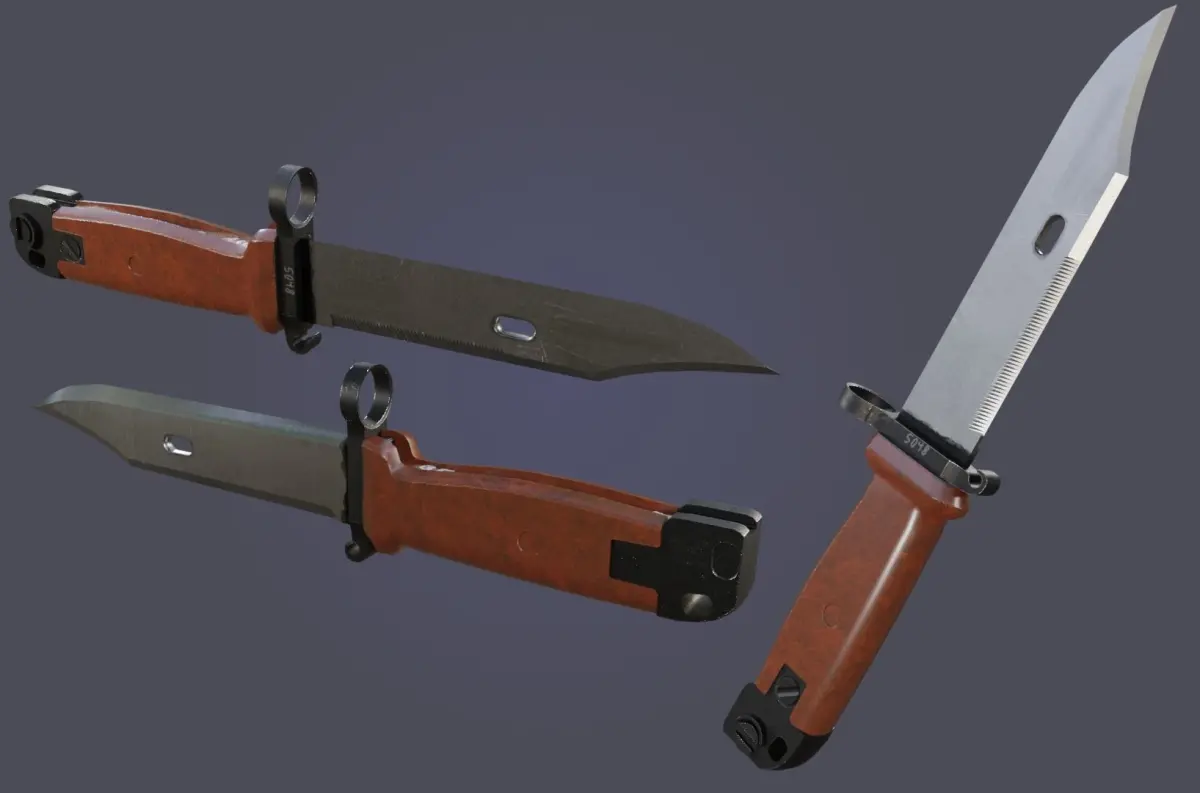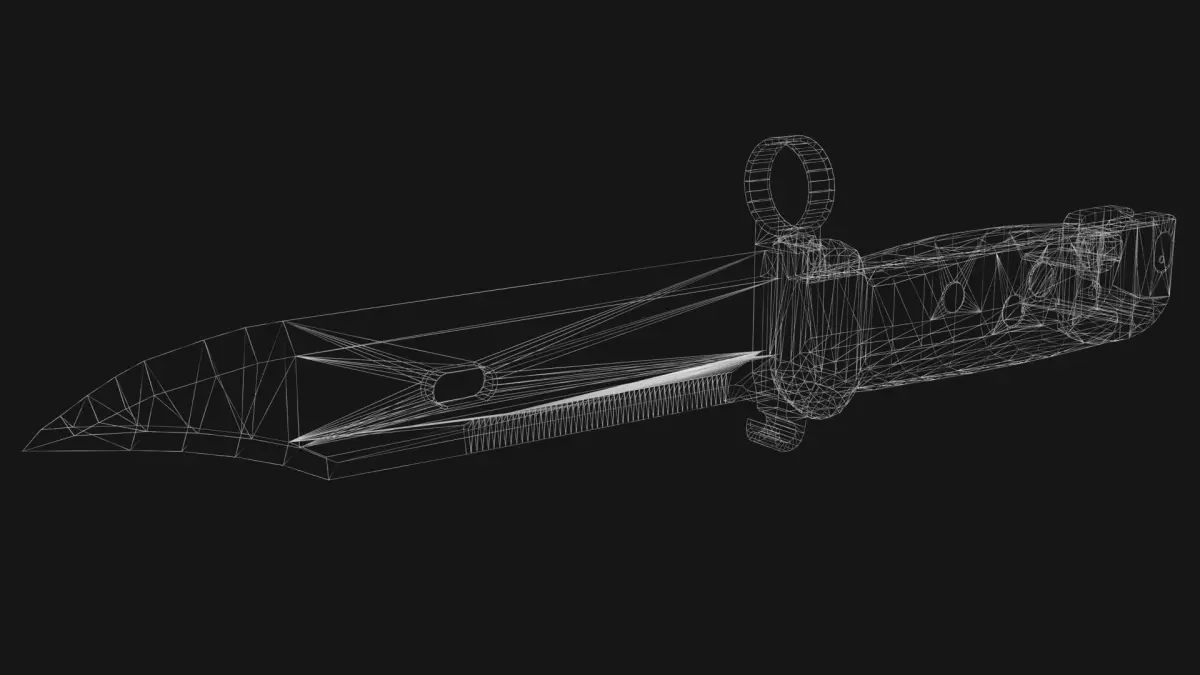 - 1:1 Scale of real world equivalent (e.g. Blade section itself is 3cm vertically, and 15cm long horizontally, horizontal being from the hilt to the tip of the blade)
