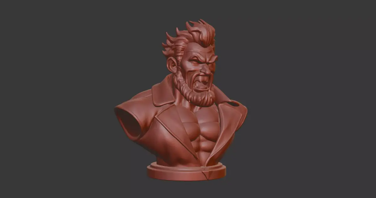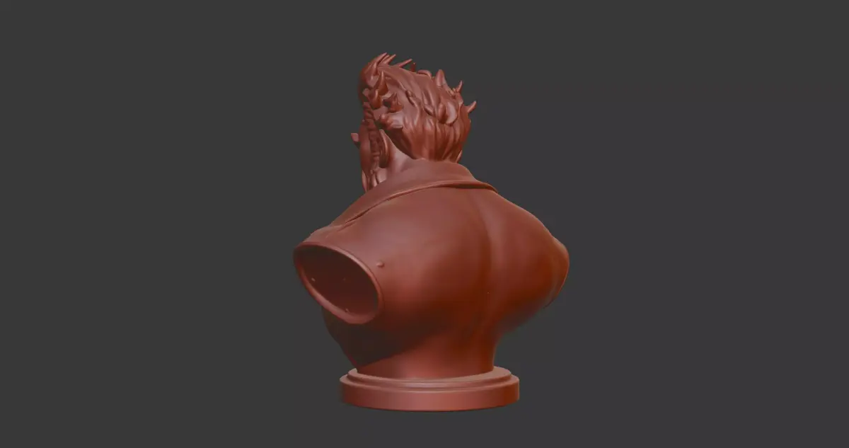 A fierce bust of Akuma from Street Fighter, capturing his menacing stare, spiky hair, prayer beads, and muscular shoulders. The design emphasizes his demonic aura—details like the “天” (Ten) kanji on his back, snarling expression, and flowing gi folds are sculpted for dramatic lighting and shadow. Watertight mesh, high detail, ready for both display and cosplay use.