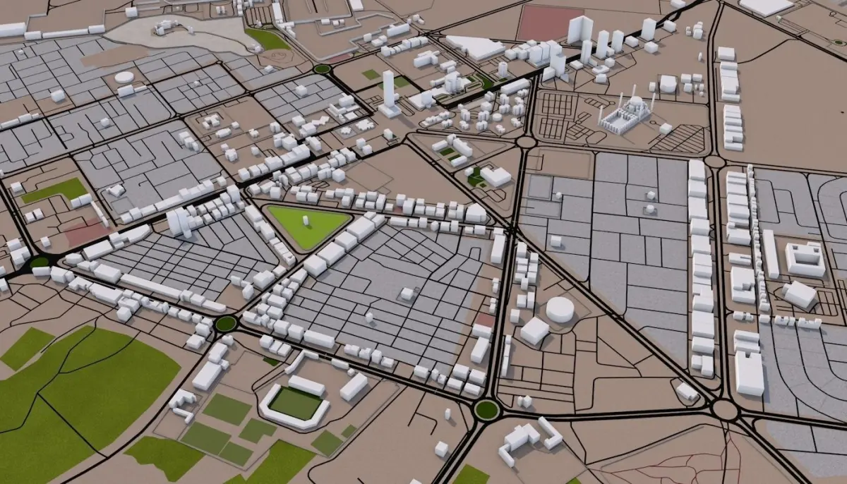 Clean heirarchy- Proper grouping according to the type of real world objects. Properly named objects and materials. Clean Flat UV map- Properly unwrapped UV for most of the objects. Some objects may have cubic mapping applied. Buildings are extracted from real world data. There are random buildings added to some areas where real world data is partially available (missing height details).