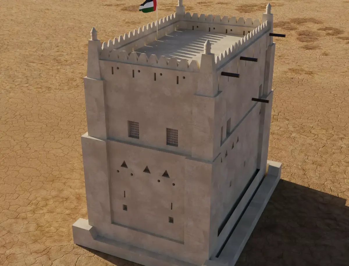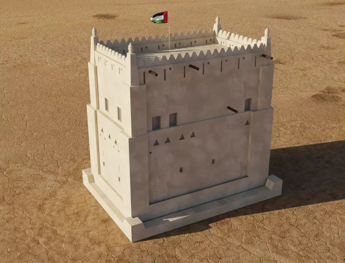 A high-quality 3D recreation of the historic Al Murabaa Fort in Abu Dhabi, United Arab Emirates. This model captures the iconic square architecture of one of the UAE's most important heritage sites.The model features accurate proportions, recessed triangular windows, and the traditional crenelated roofline characteristic of the region.
