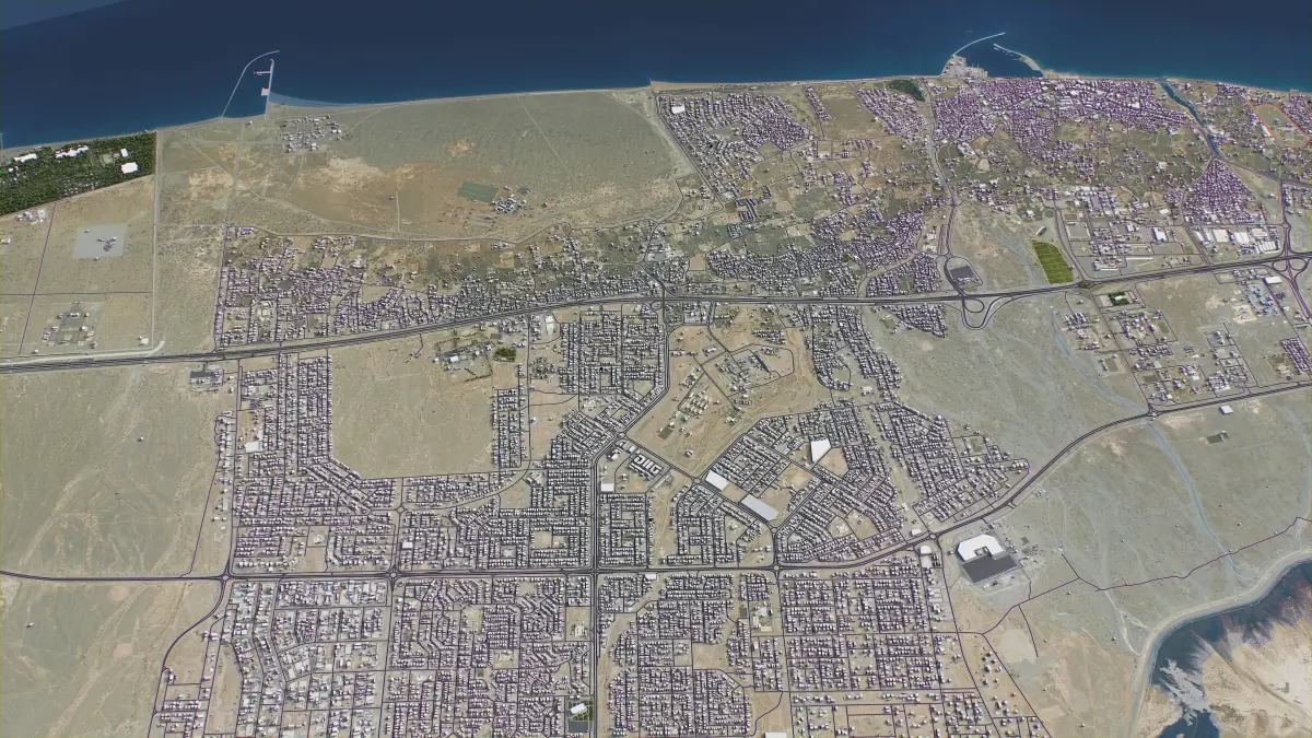 - Full city extents up to 100 x 100 km — or crop to an area of interest for better format compability and scene performance
