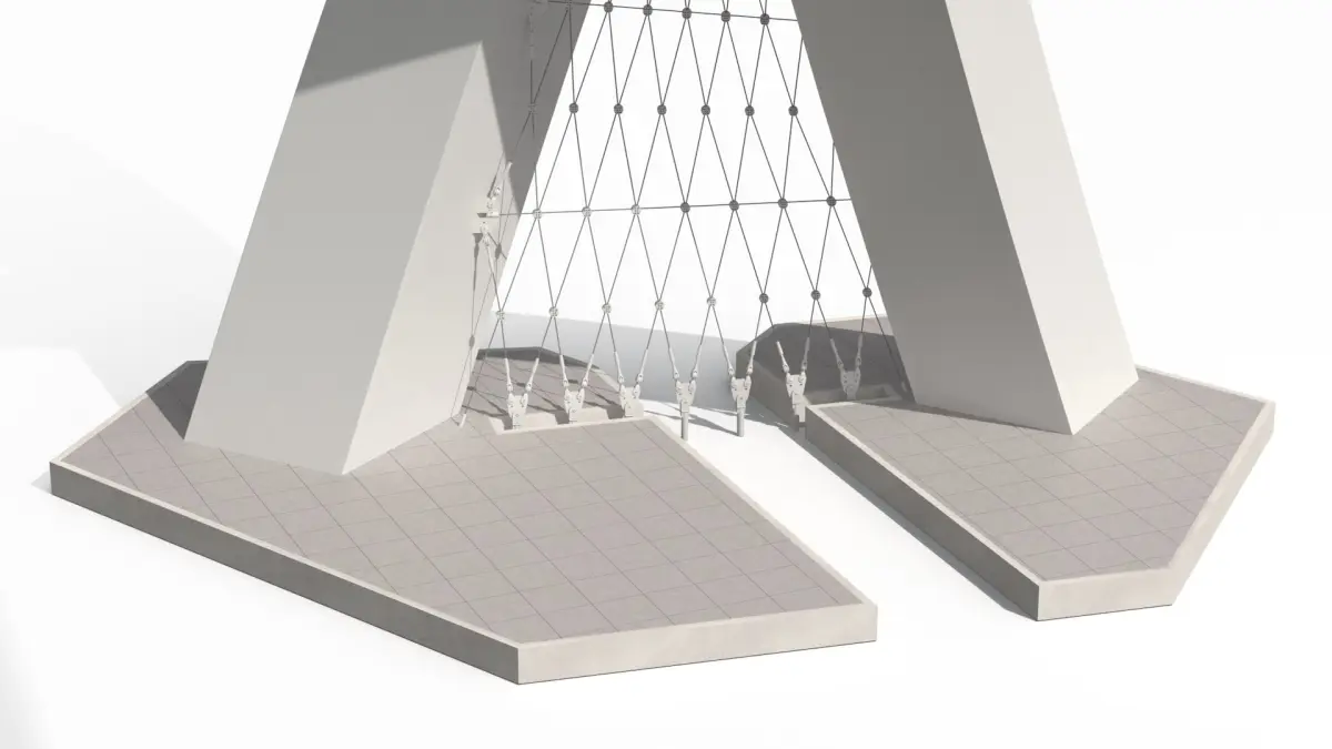 For architectural visualization, bridge design projects, urban development, modern architecture studies, public infrastructure proposals, civil engineering demonstrations, art installations, futuristic city planning, sculptural architecture exhibitions, and educational purposes.