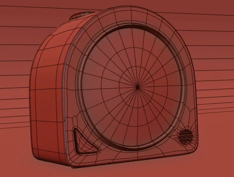 This 3D model represents a contemporary, minimalist alarm clock with a square and rounded design. The clock features a vibrant green body with a sleek, modern aesthetic, perfect for adding a pop of color to any interior decor.