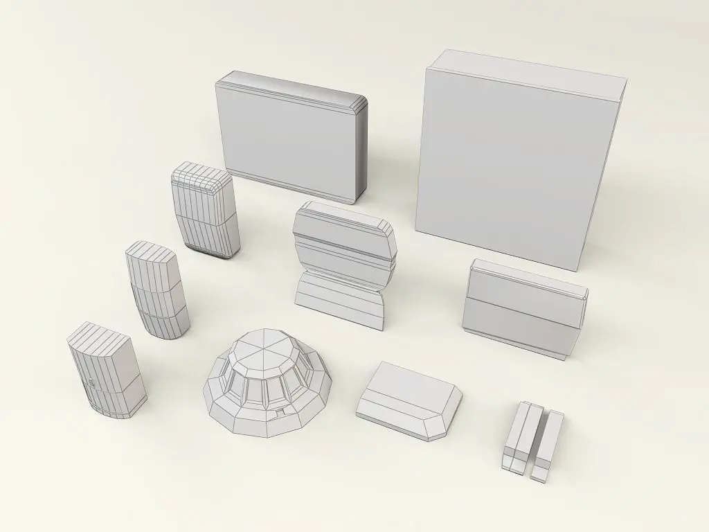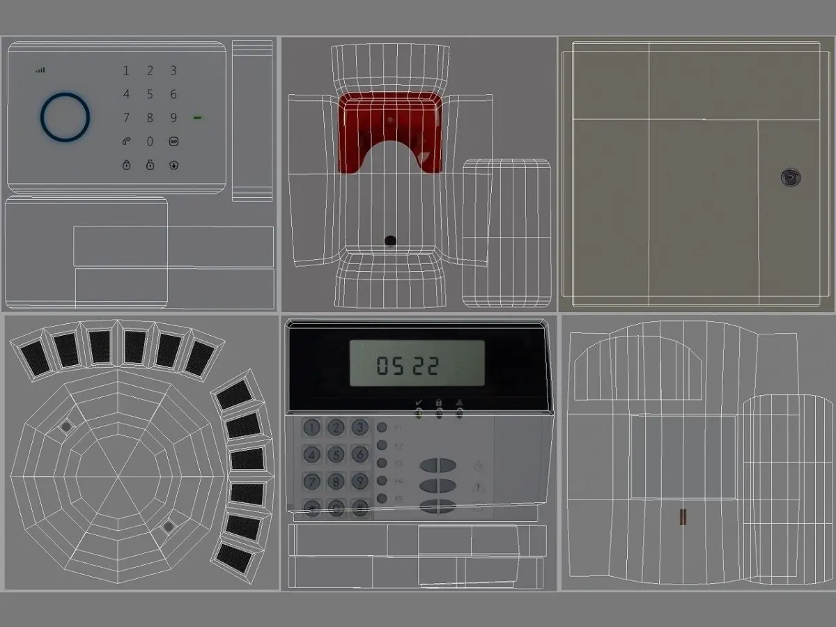 Collection of 10 low poly electronic alarm components for educational, visualization and other purposes.Clean topology, no N-gons and triangles, quads only.Maya 7 (.ma, .mb), OBJ (.obj with .mtl), 3ds Max 2009 (.max) and Autodesk FBX (.fbx) format included.FBX and OBJ are directly exported from Maya.