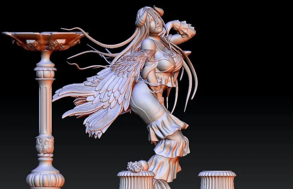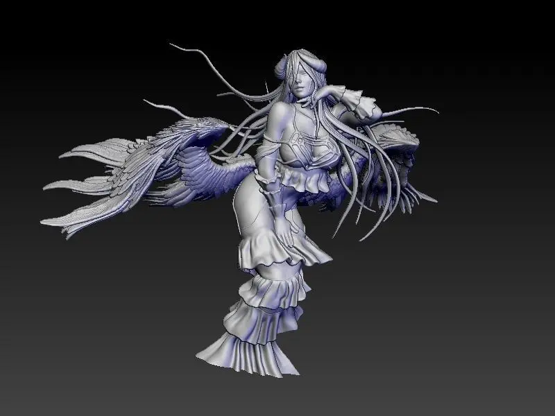 Albedo character from anime series Overlord. Albedo is a succubus, the Overseer of the Guardians of the Great Tomb of Nazarick. She is in charge of the general management and supervises the activities of the seven Floor Guardians, meaning that she ranks above all the other characters in Nazarick. She is the middle sister of the older sister Nigredo and younger sister Rubedo. Along with her sisters, she was created by Tabula Smaragdina.File in full piece and divided into parts for easy 3d printing. Files extracted for 30cm tall.
