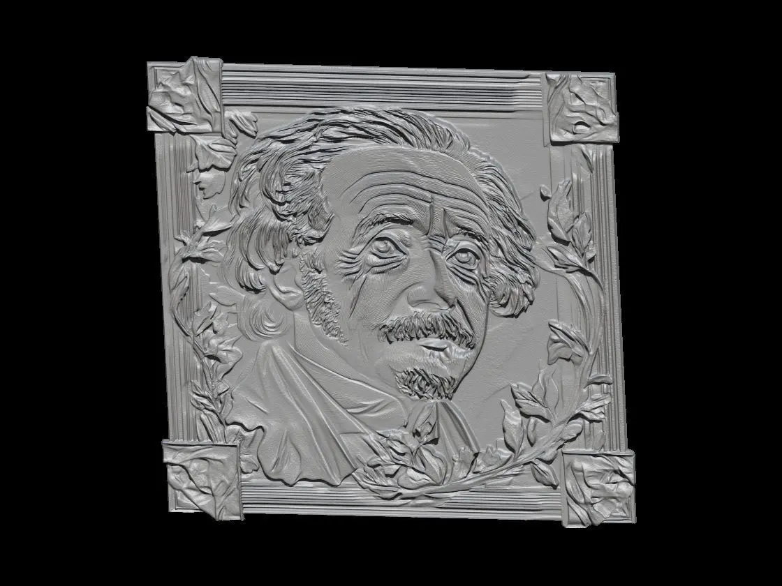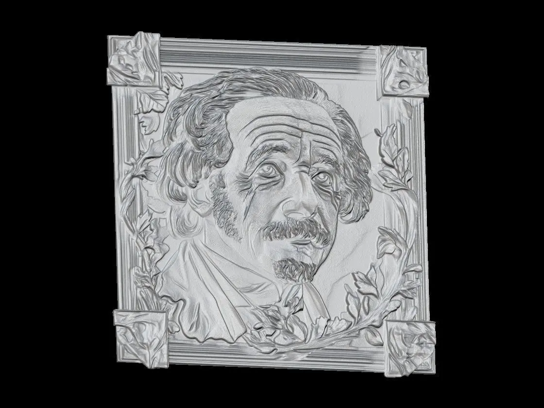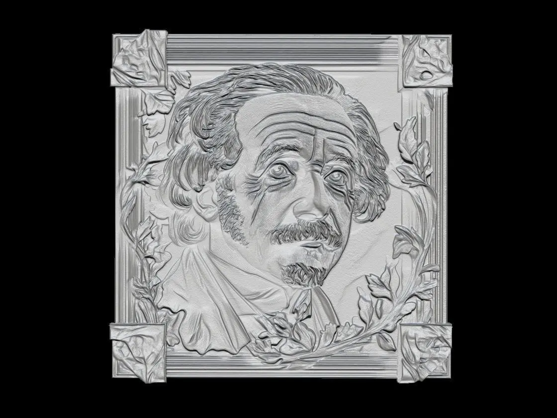 Elegant Relief Design: Features a highly detailed portrait of Albert Einstein within an ornate frame, symbolizing creativity and genius. Versatile Applications: Ideal for wall decor, medallions, or keepsakes celebrating science and art. File Formats and Compatibility: