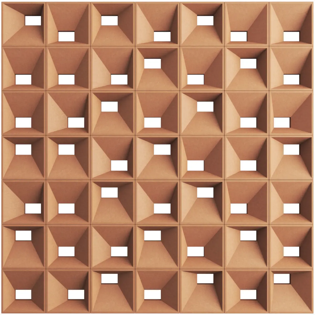 Castle walls inspired by this unique block tile. Its center-off axis openings can be laid in eight different positions, allowing you to create big screens without any obvious repetitions.