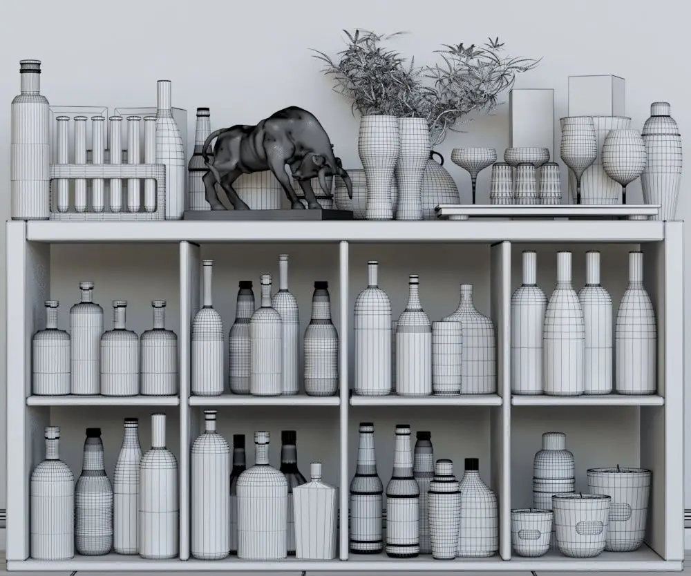HomeCatalogAlcohol set liquor cabinet with bottles and glasses 3D model
