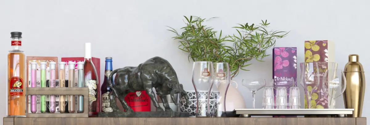 In the archive there are all materials, textures and files for comfortable work.These decor objects are perfect for the interior of pubs, restaurants, cuisines, hotel business and more.An excellent renderer