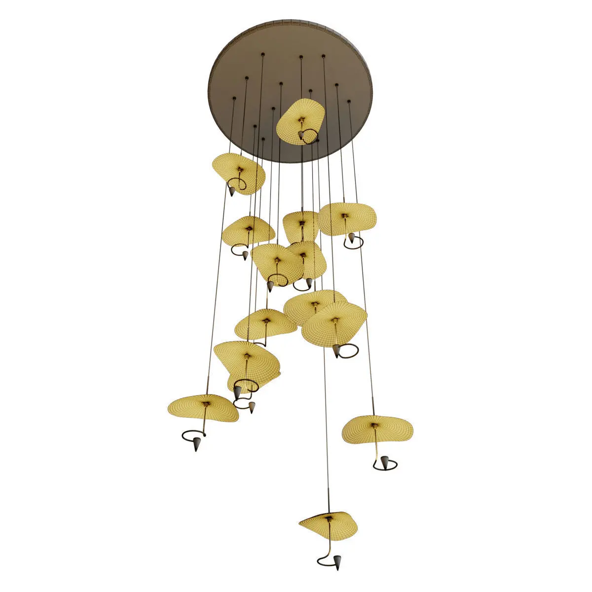 Chandelier typeColor GoldMaterial Metal /Size Size 1 suspension: D 25 cm15 rounds: D 80 cm, H 200 cmif necessary - height can be addedLED lamp type 3000 KIP 20 protectionLight source included /Art Nouveau / Fusion / Contemporary /Place of uselounge / lounge area / bar, cafe, restaurant / hotel and hotel /