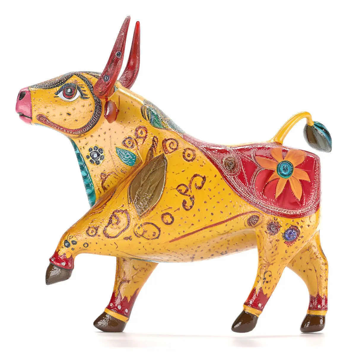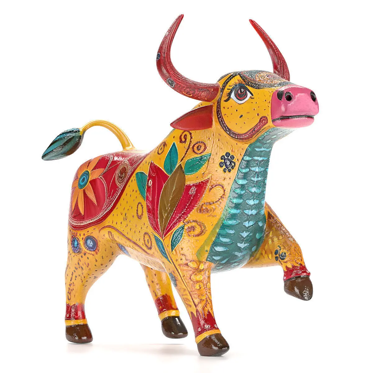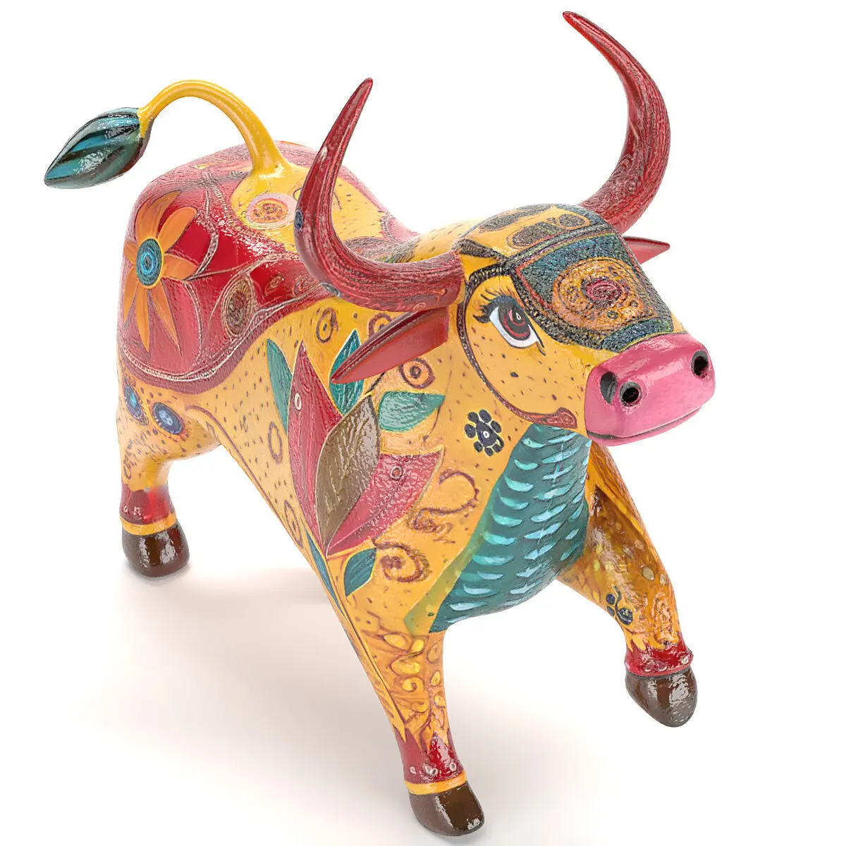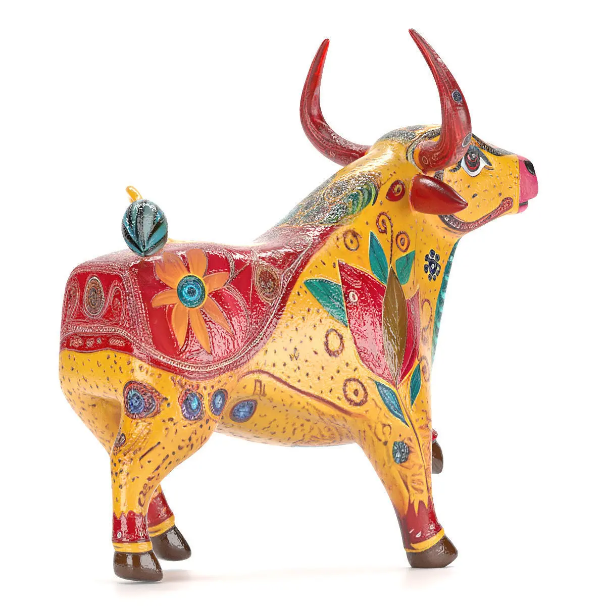 Traditional Mexican alebrije-type bull craft in Max and FBX formats, including maps and materials rendered with Corona Render 12 and modeled with Quad Topology.