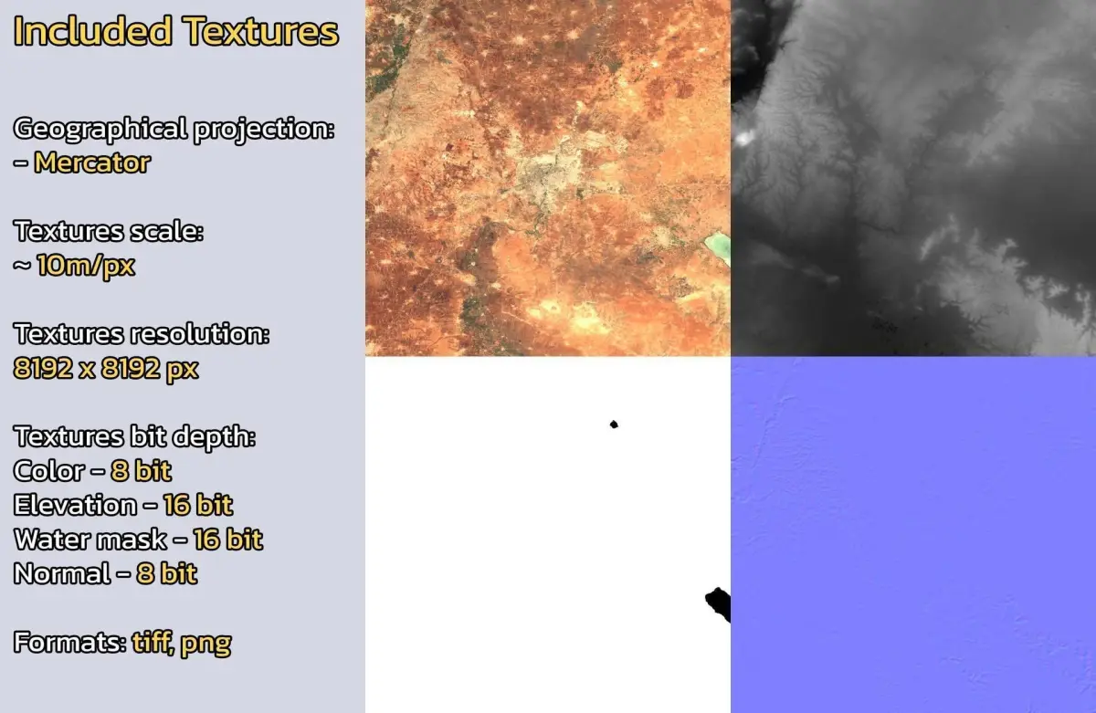 Warning: minor clouds/artifacts may be present on the diffuse color satellite texture due to the nature of the dataset. Check product images.