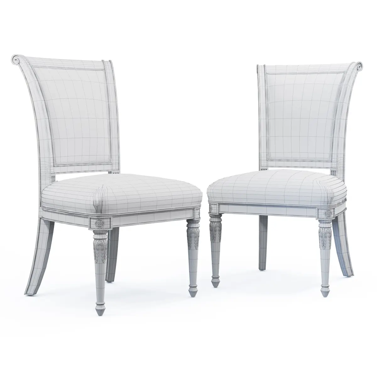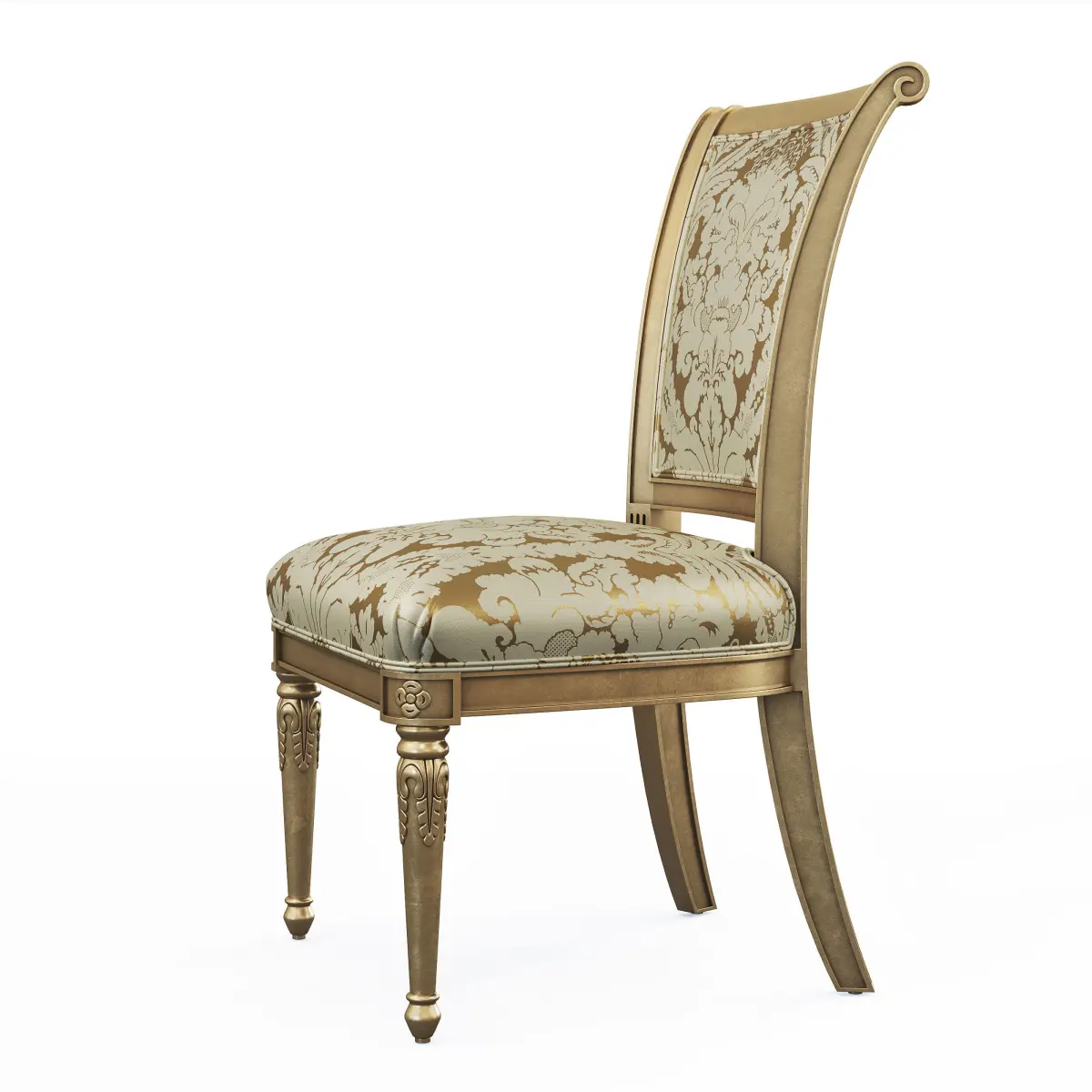 The Alex dining chair shows a refined classical style with wood crafted structure and ornamental carvings.